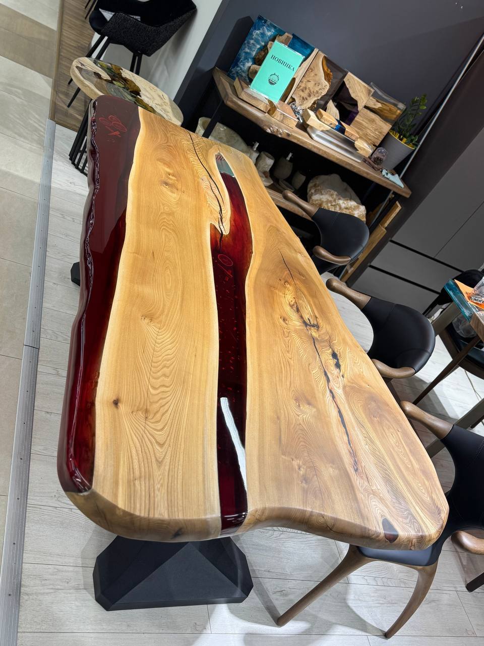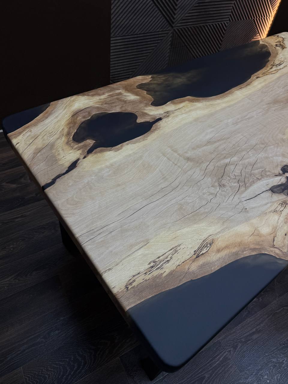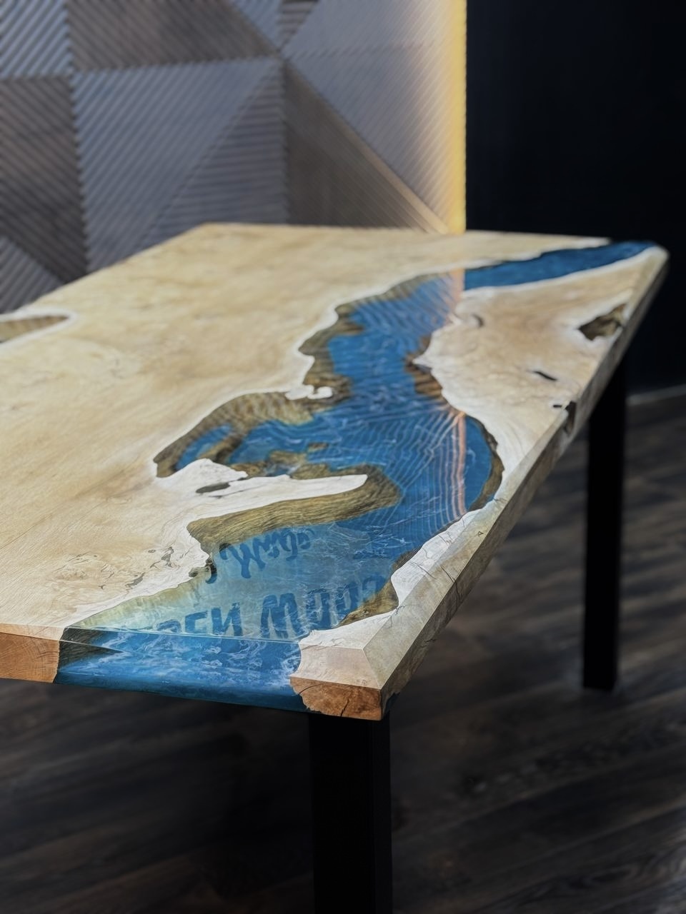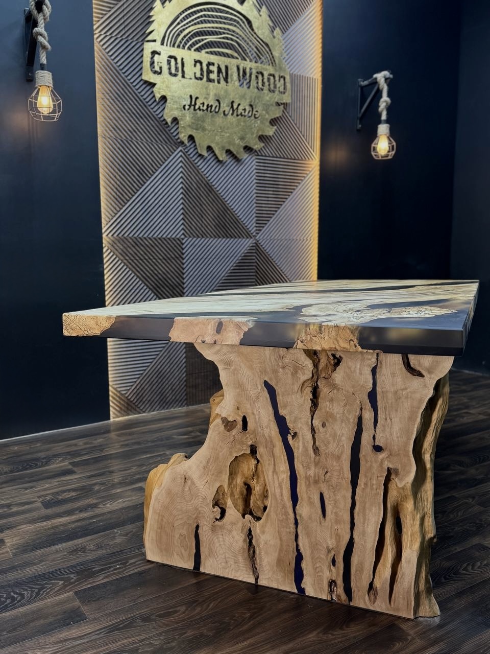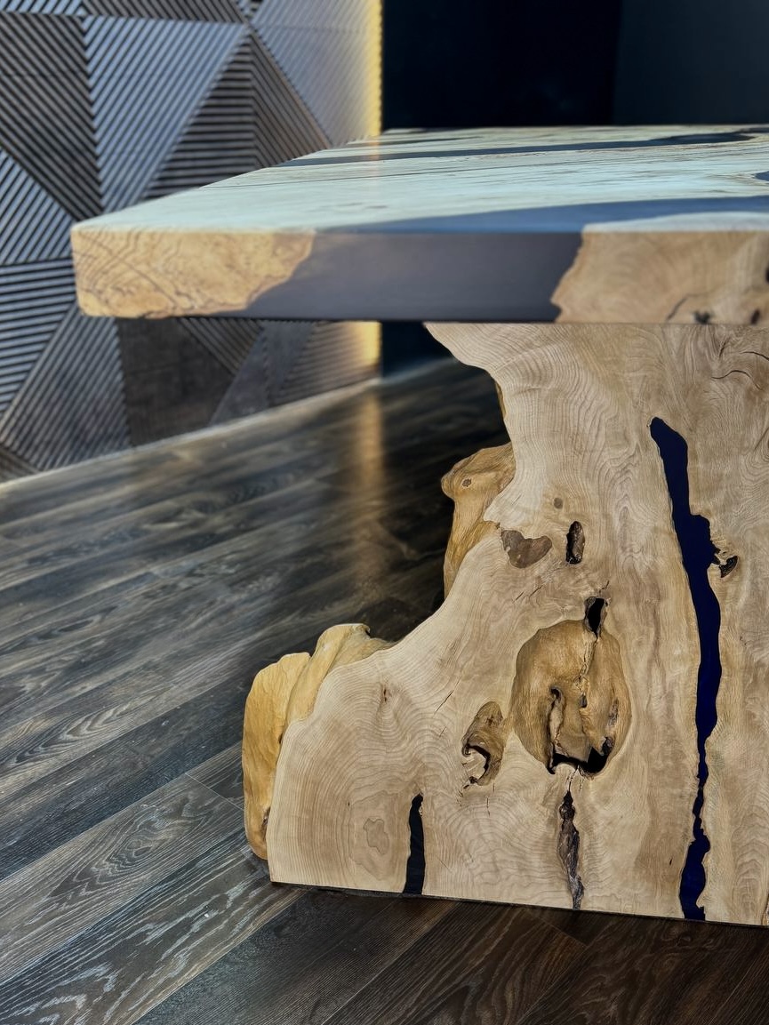 /Обеденный стол — это не просто предмет мебели, а настоящий центр жизни. Он создан для семейных ужинов, душевных встреч и важных разговоров за едой.Стол идеально вписывается в любой интерьер — будь то современная квартира или классический загородный дом. Сочетание натурального массива дерева и эпоксидной смолы, дарует ему уникальный характер, долговечность и неподвластное времени очарование./