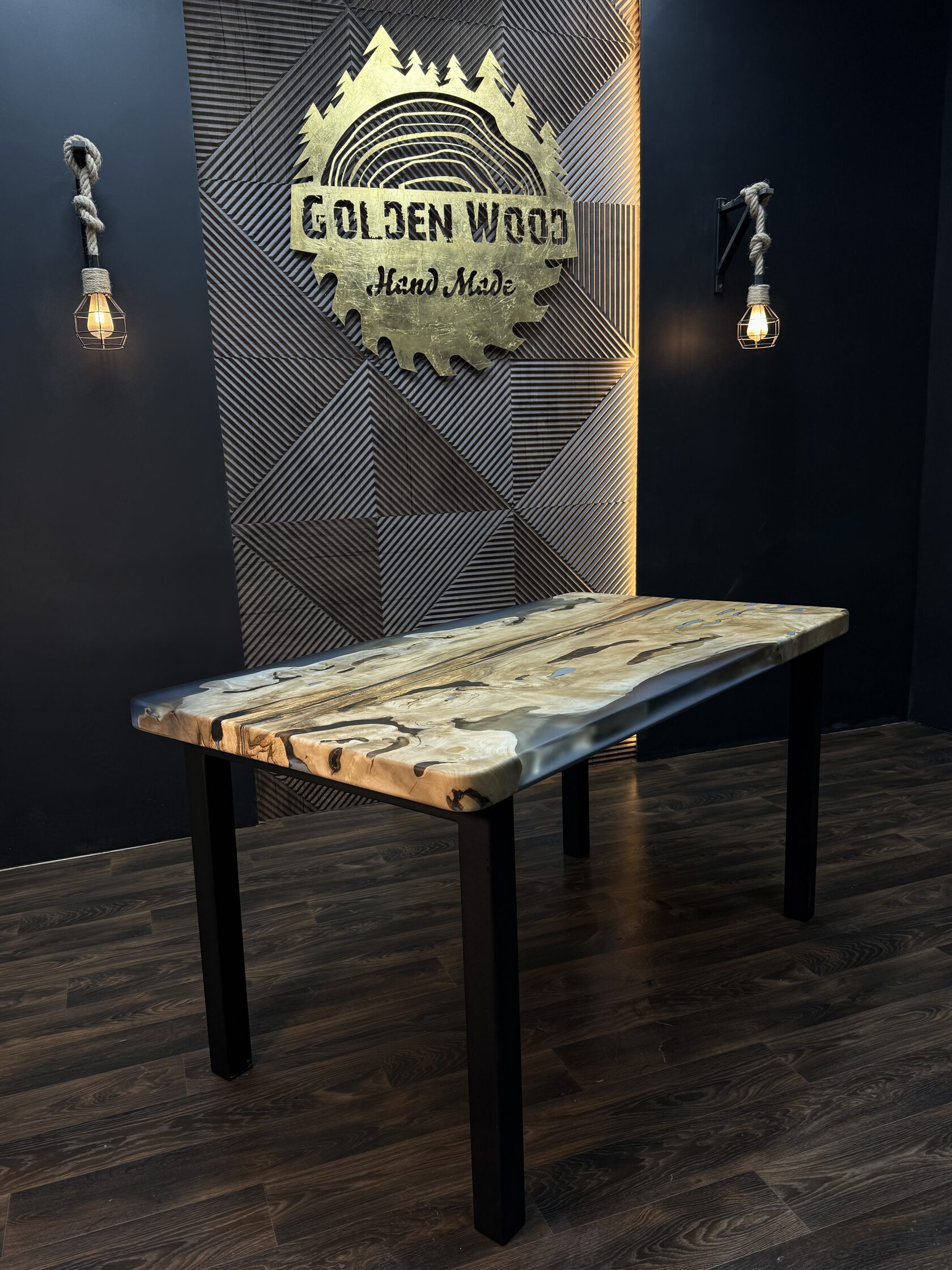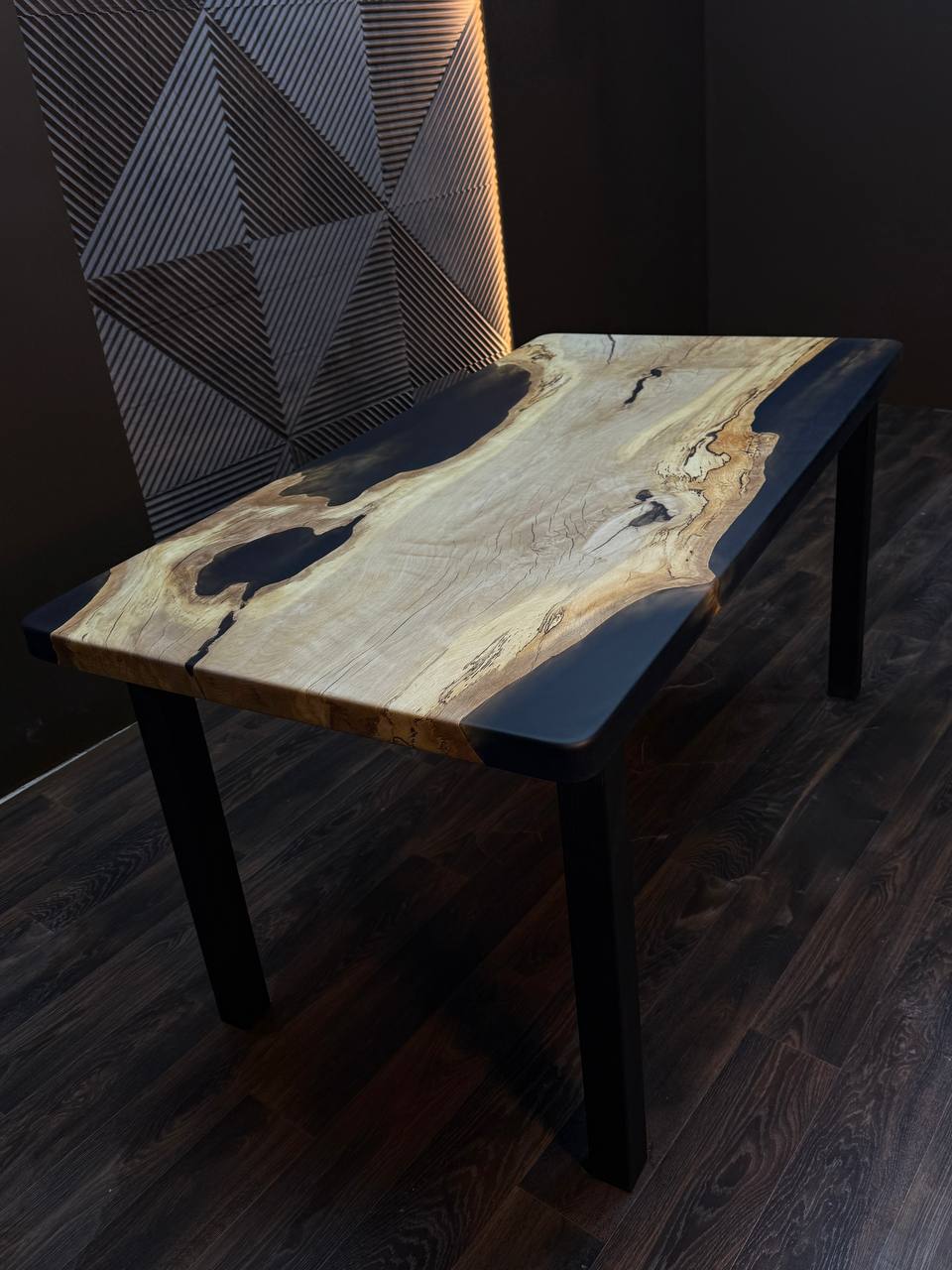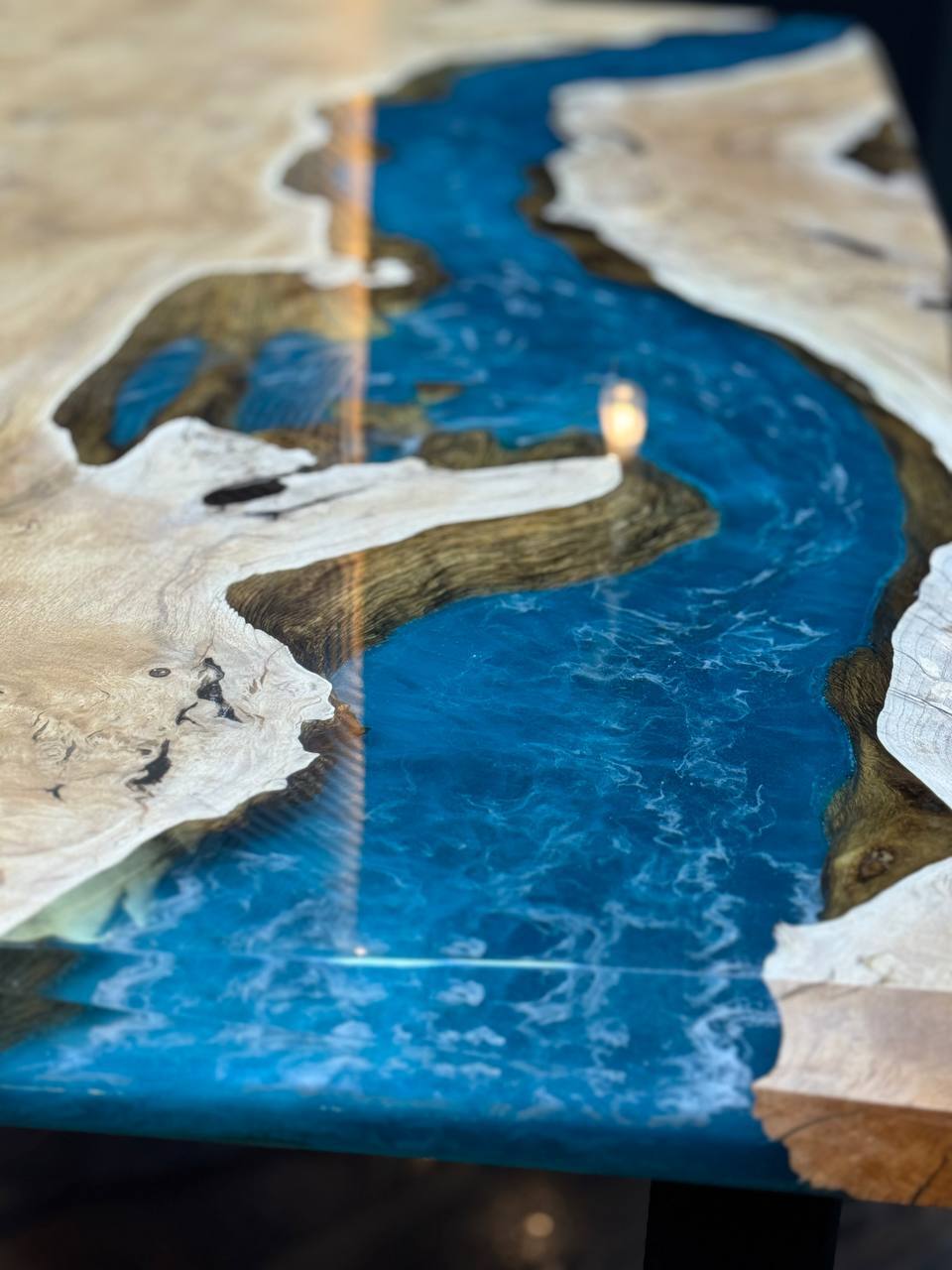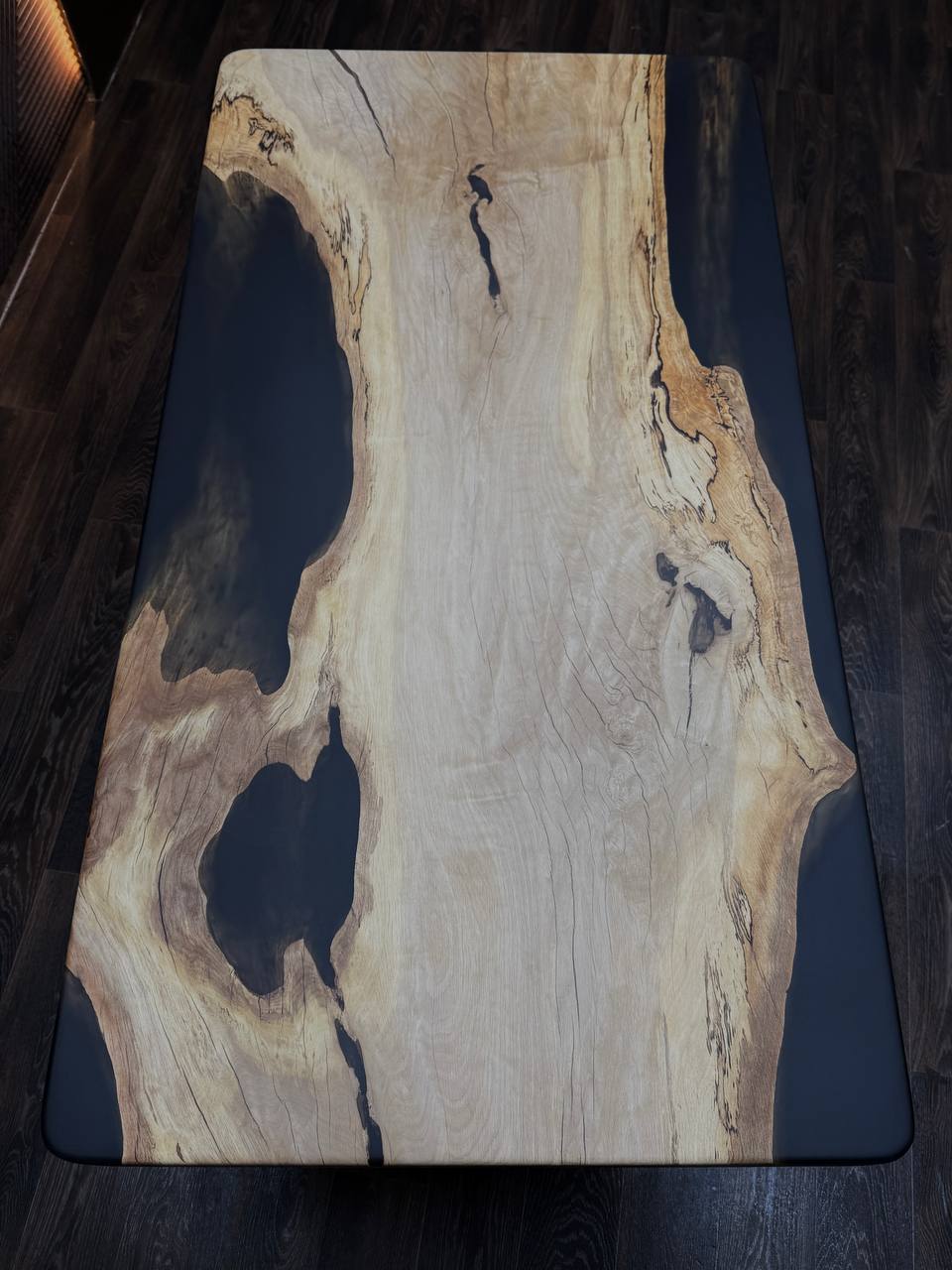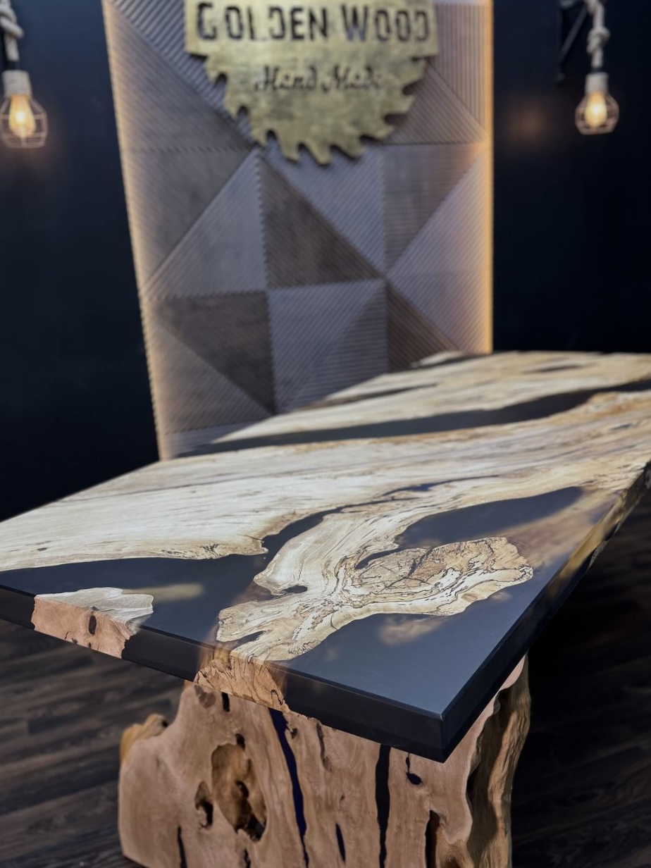 /Обеденный стол — это не просто предмет мебели, а настоящий центр жизни. Он создан для семейных ужинов, душевных встреч и важных разговоров за едой.Стол идеально вписывается в любой интерьер — будь то современная квартира или классический загородный дом. Сочетание натурального массива дерева и эпоксидной смолы, дарует ему уникальный характер, долговечность и неподвластное времени очарование./