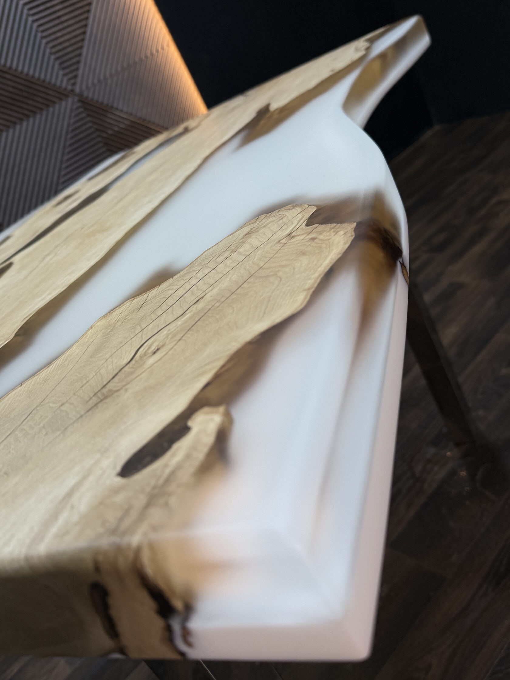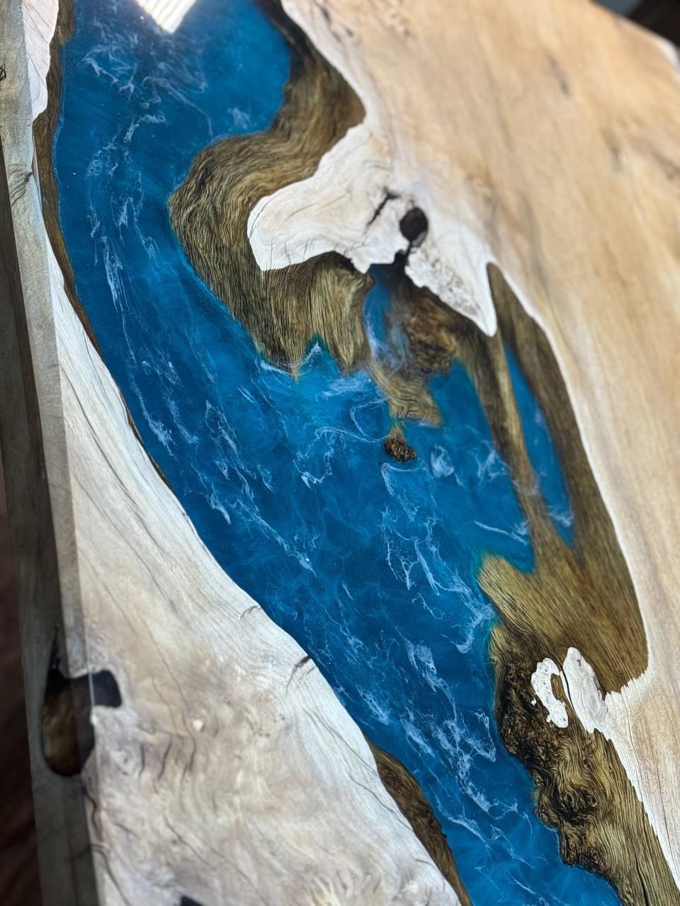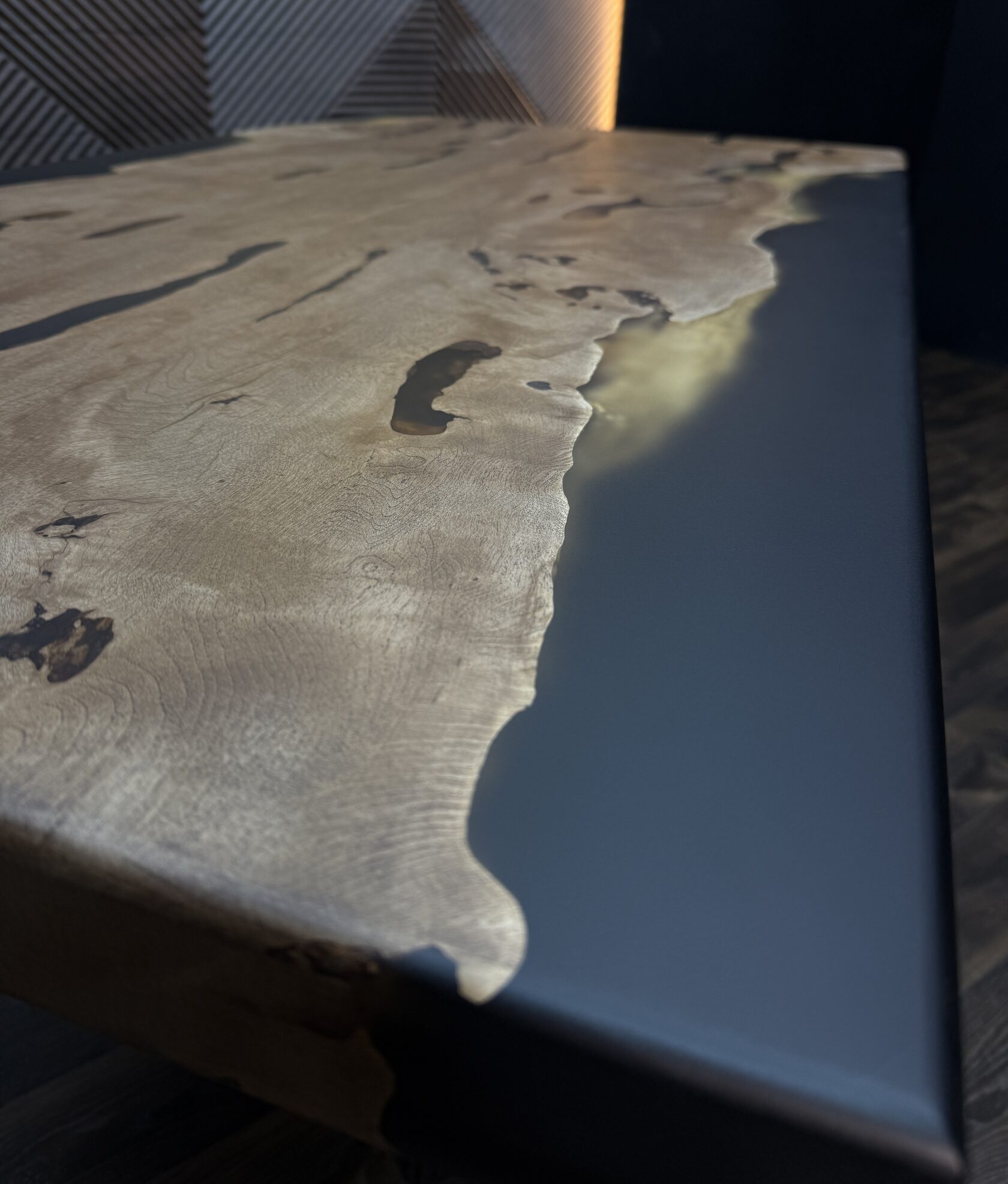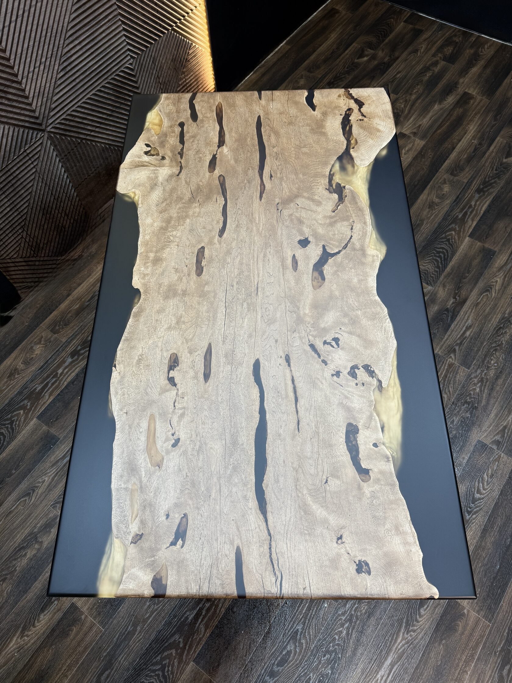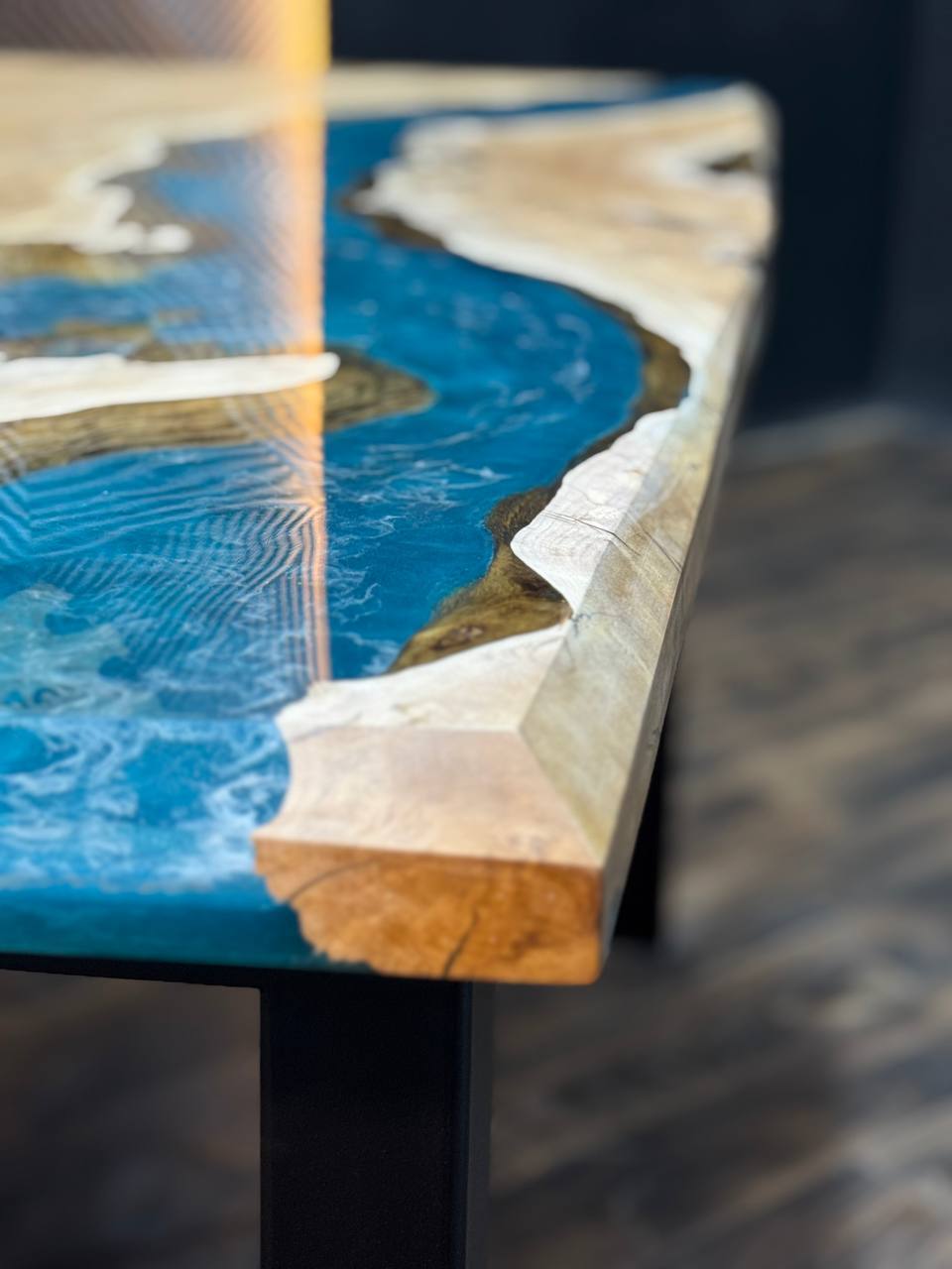 /Обеденный стол — это не просто предмет мебели, а настоящий центр жизни. Он создан для семейных ужинов, душевных встреч и важных разговоров за едой.Стол идеально вписывается в любой интерьер — будь то современная квартира или классический загородный дом. Сочетание натурального массива дерева и эпоксидной смолы, дарует ему уникальный характер, долговечность и неподвластное времени очарование./