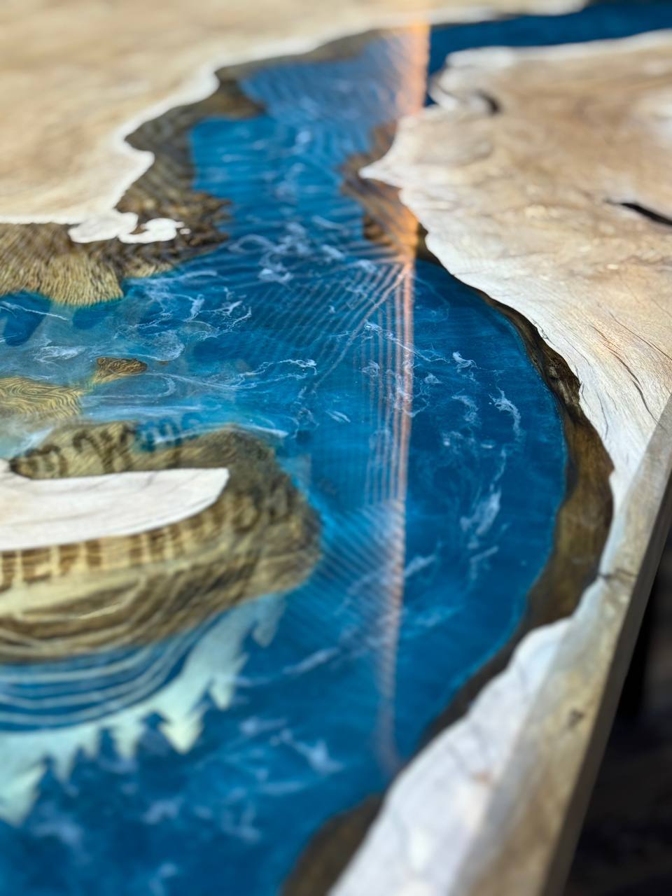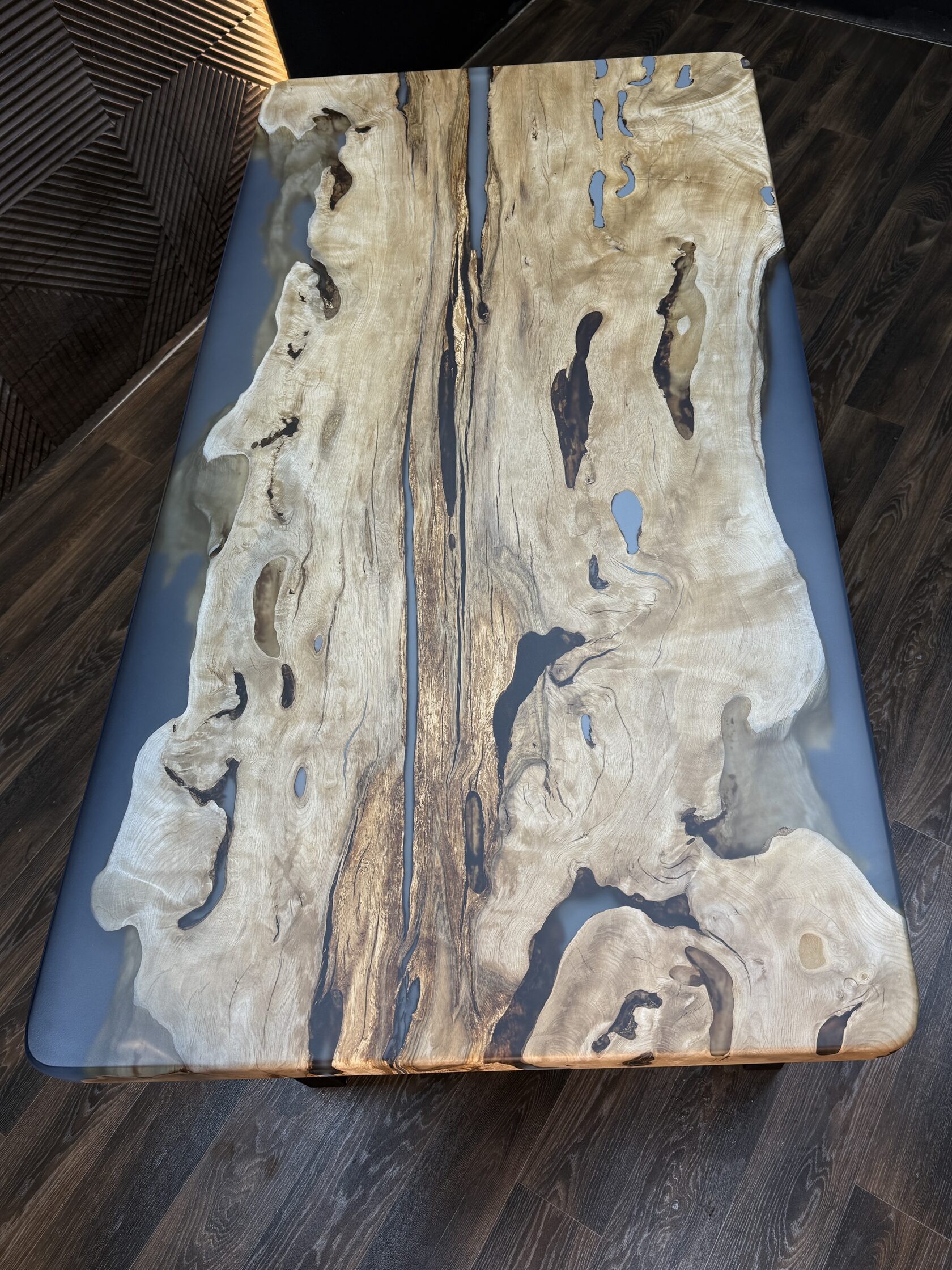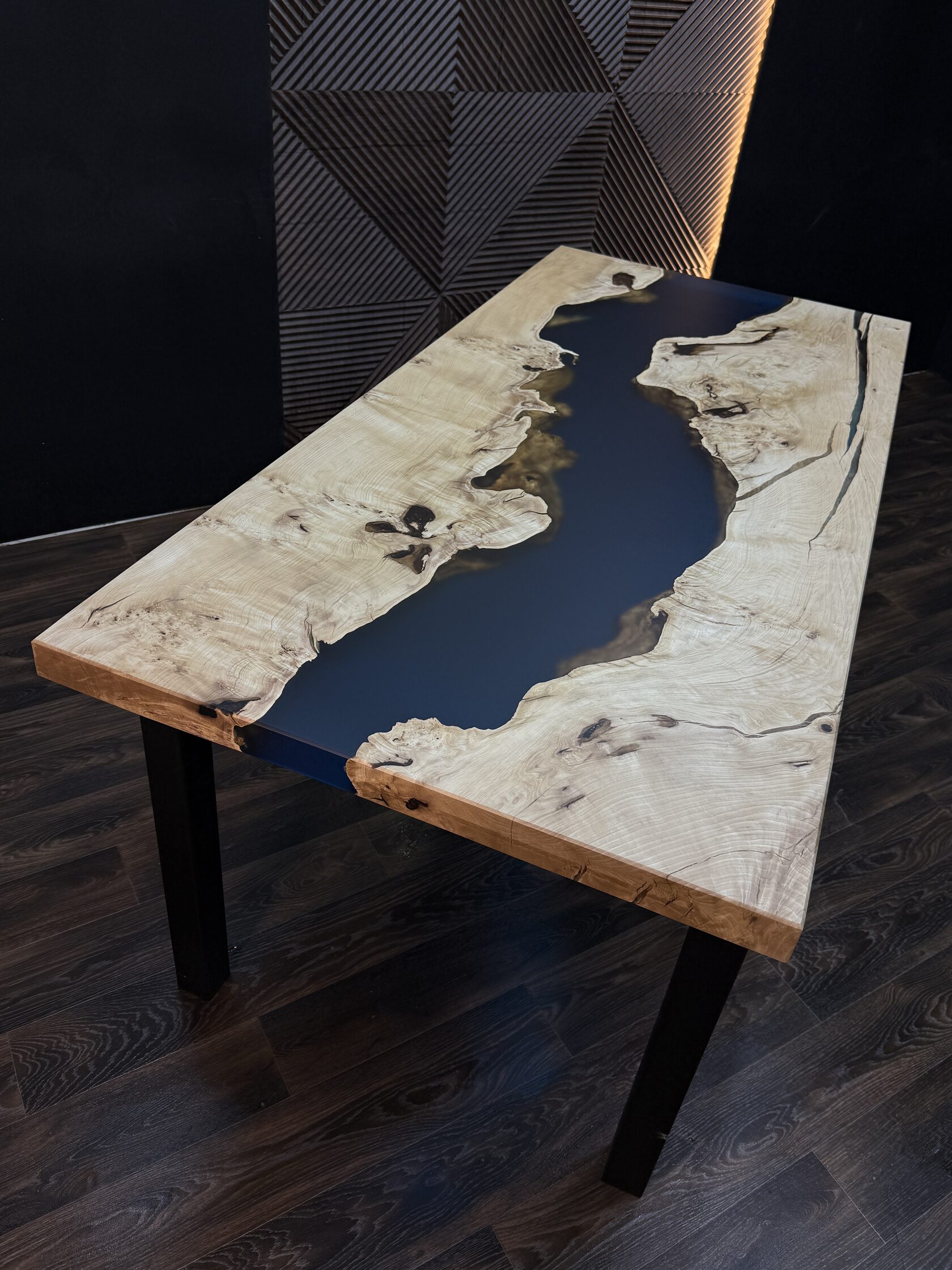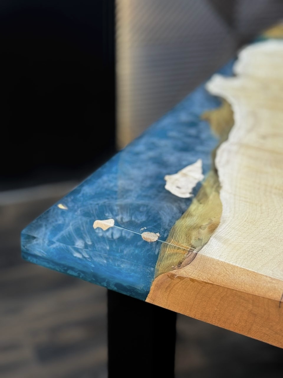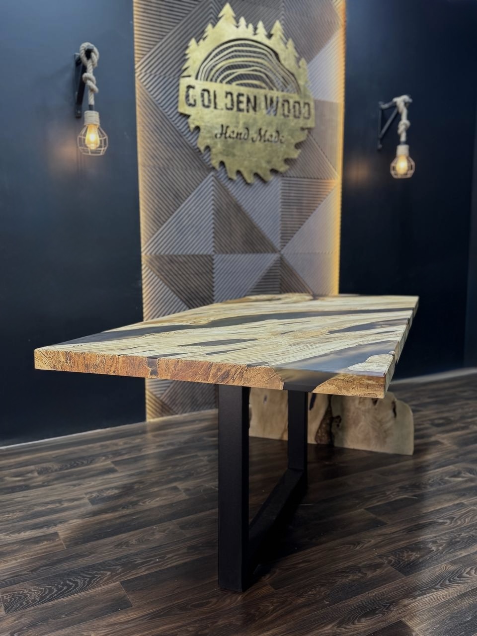 /Обеденный стол — это не просто предмет мебели, а настоящий центр жизни. Он создан для семейных ужинов, душевных встреч и важных разговоров за едой.Стол идеально вписывается в любой интерьер — будь то современная квартира или классический загородный дом. Сочетание натурального массива дерева и эпоксидной смолы, дарует ему уникальный характер, долговечность и неподвластное времени очарование./