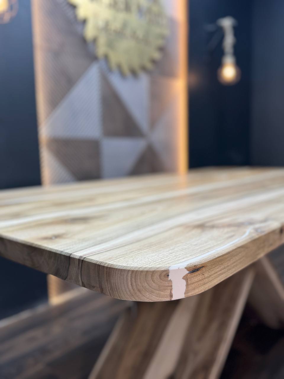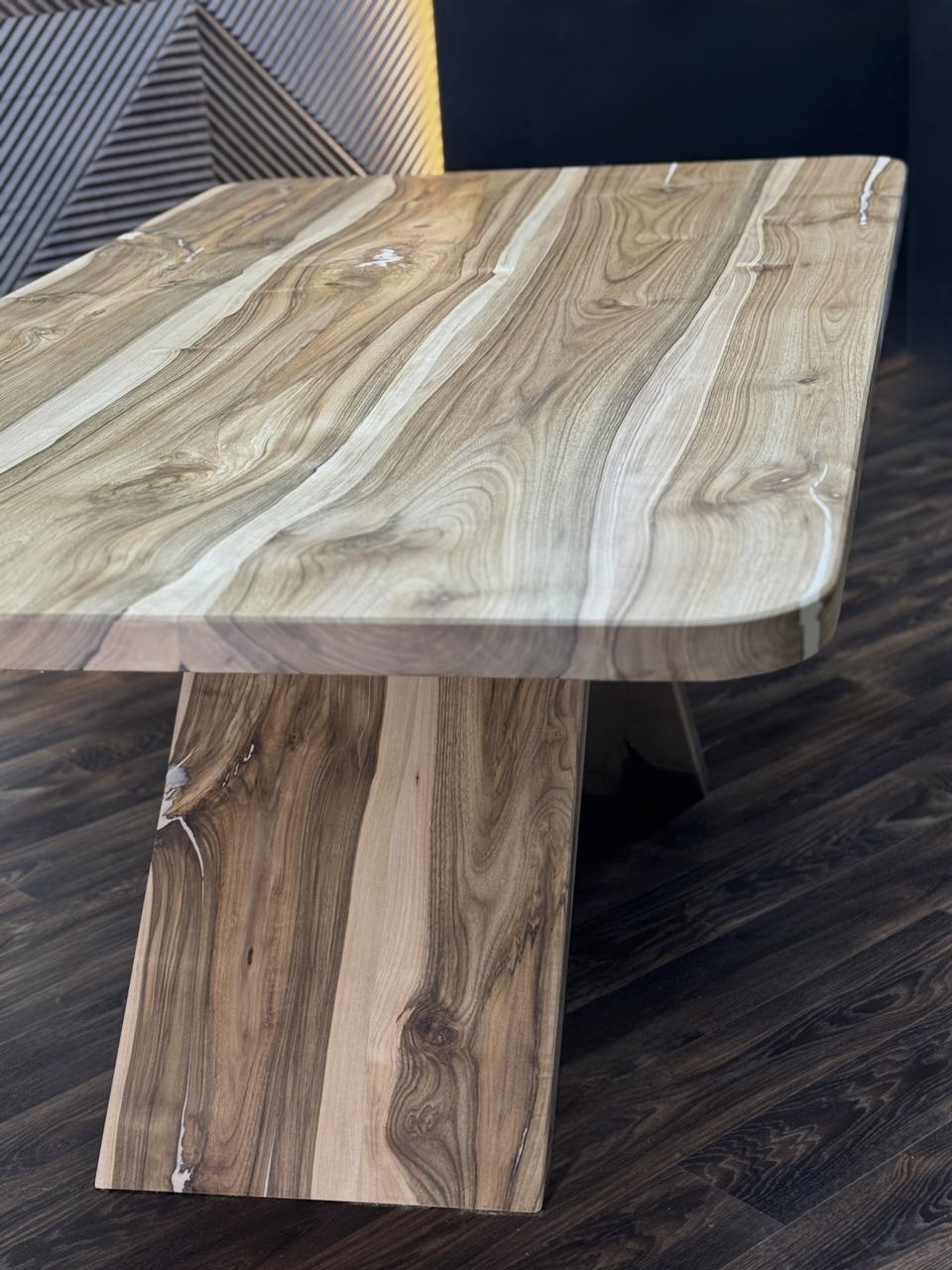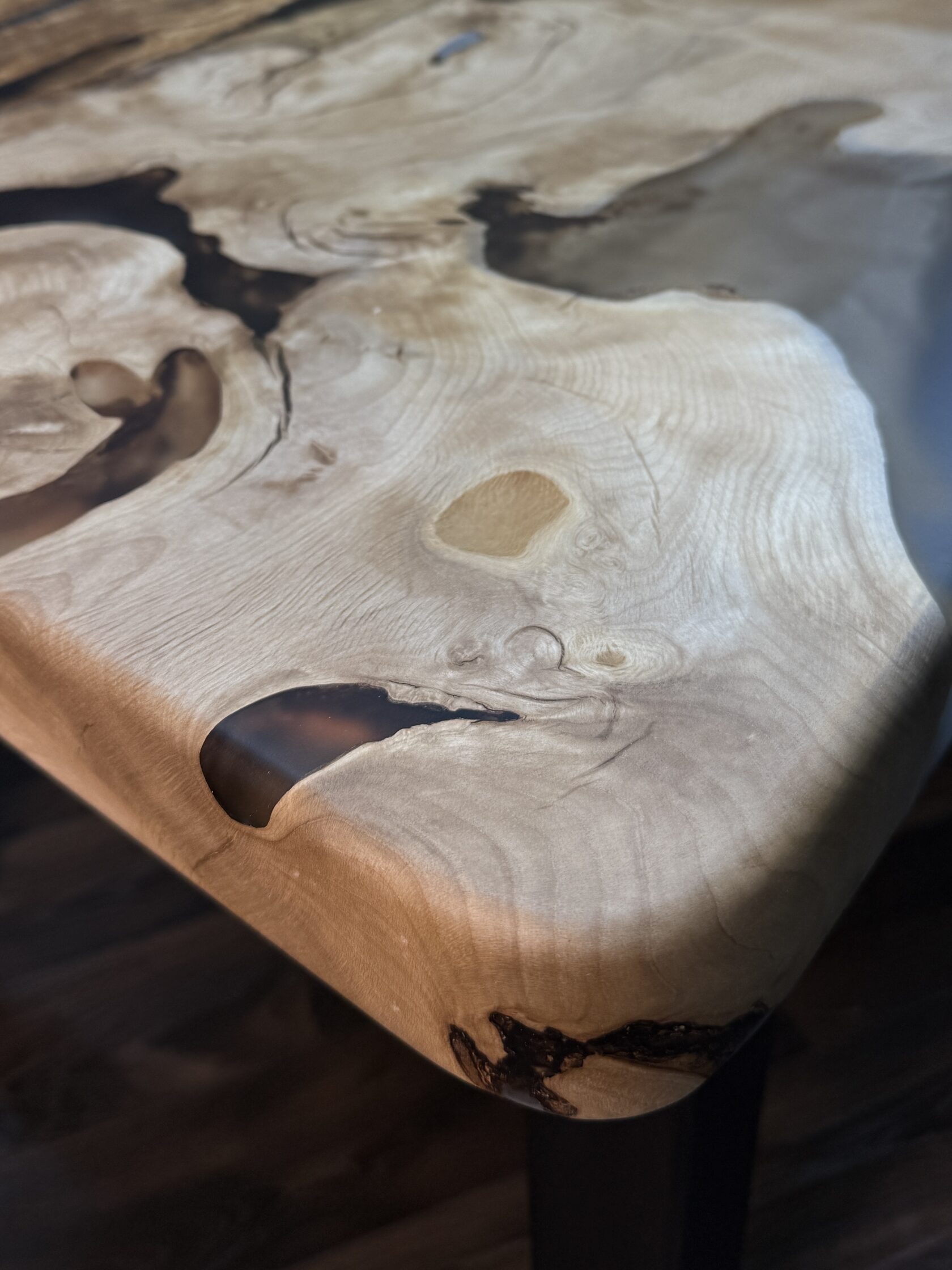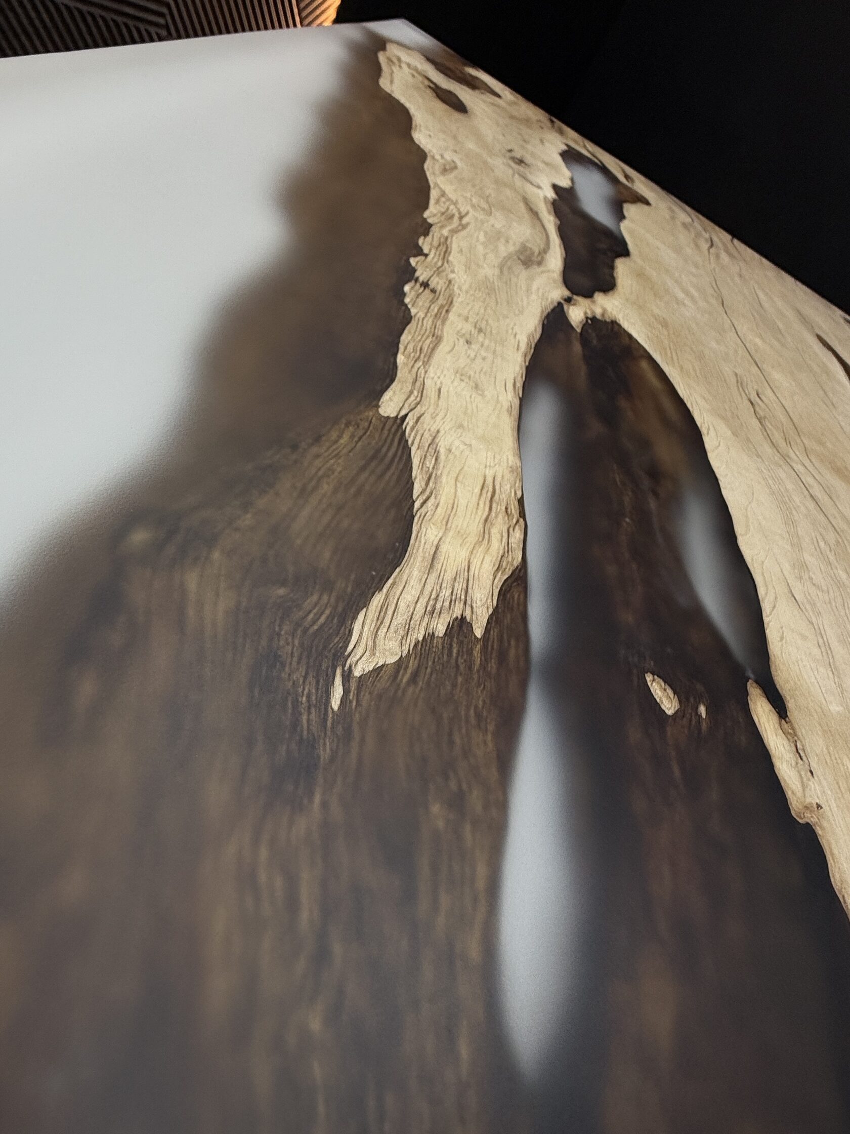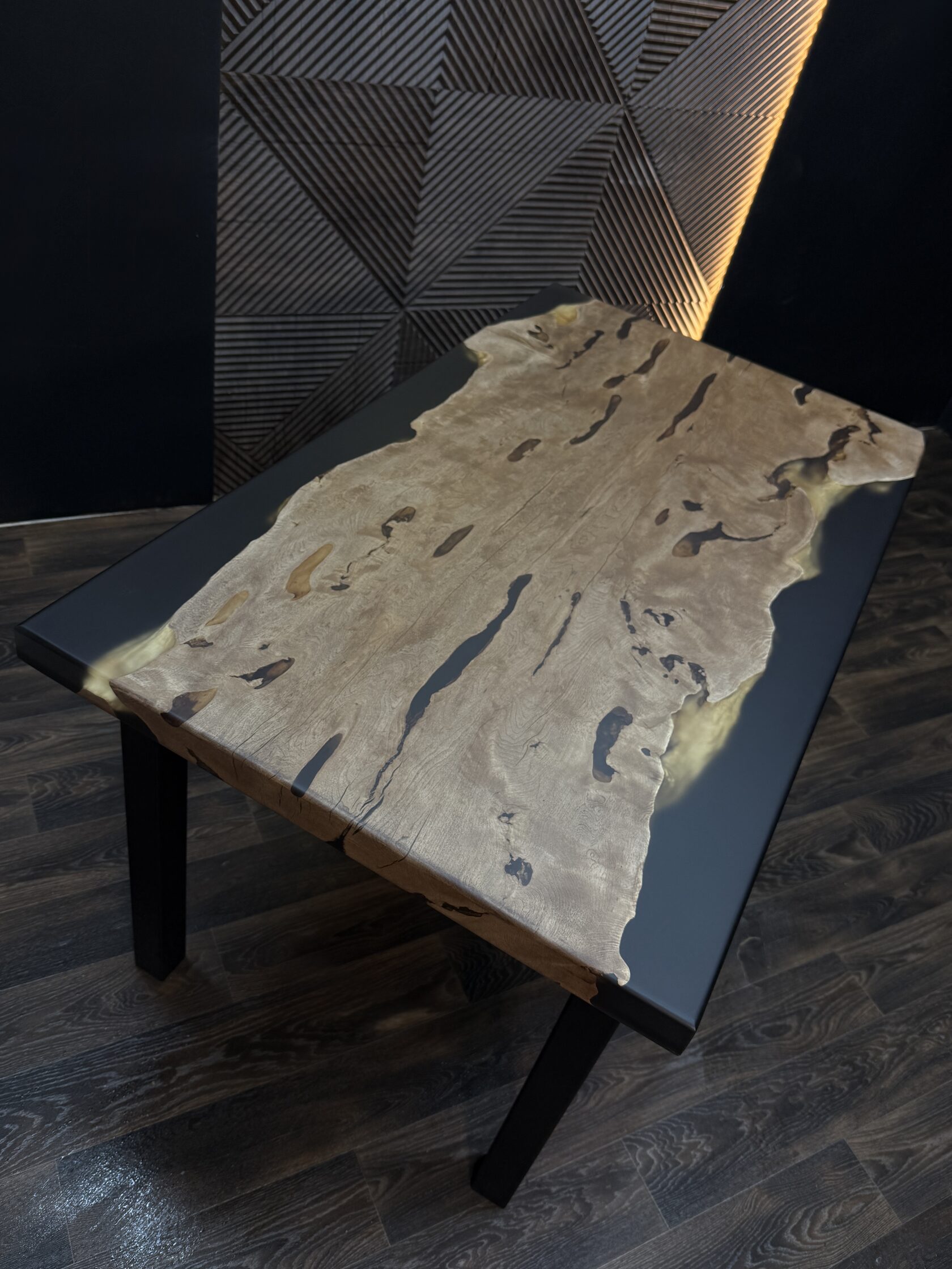 /Обеденный стол — это не просто предмет мебели, а настоящий центр жизни. Он создан для семейных ужинов, душевных встреч и важных разговоров за едой.Стол идеально вписывается в любой интерьер — будь то современная квартира или классический загородный дом. Сочетание натурального массива дерева и эпоксидной смолы, дарует ему уникальный характер, долговечность и неподвластное времени очарование./