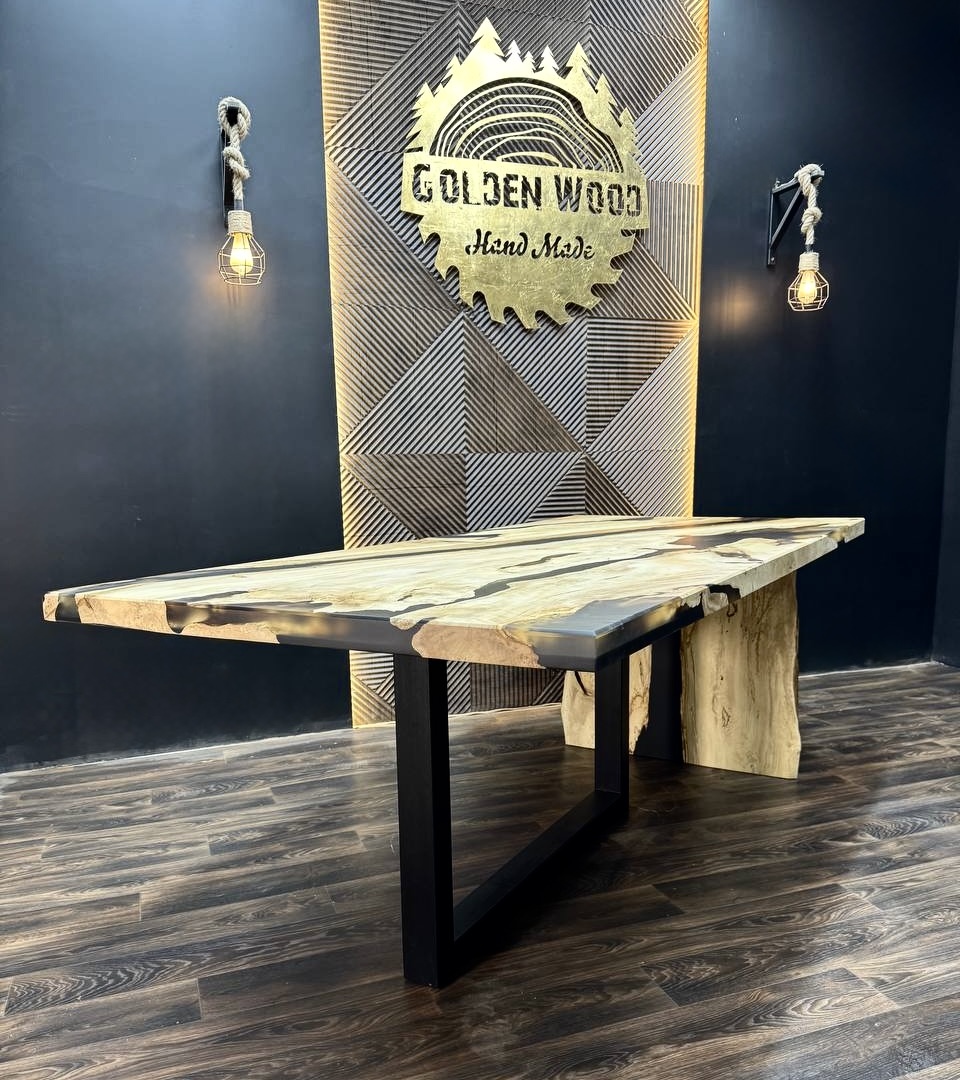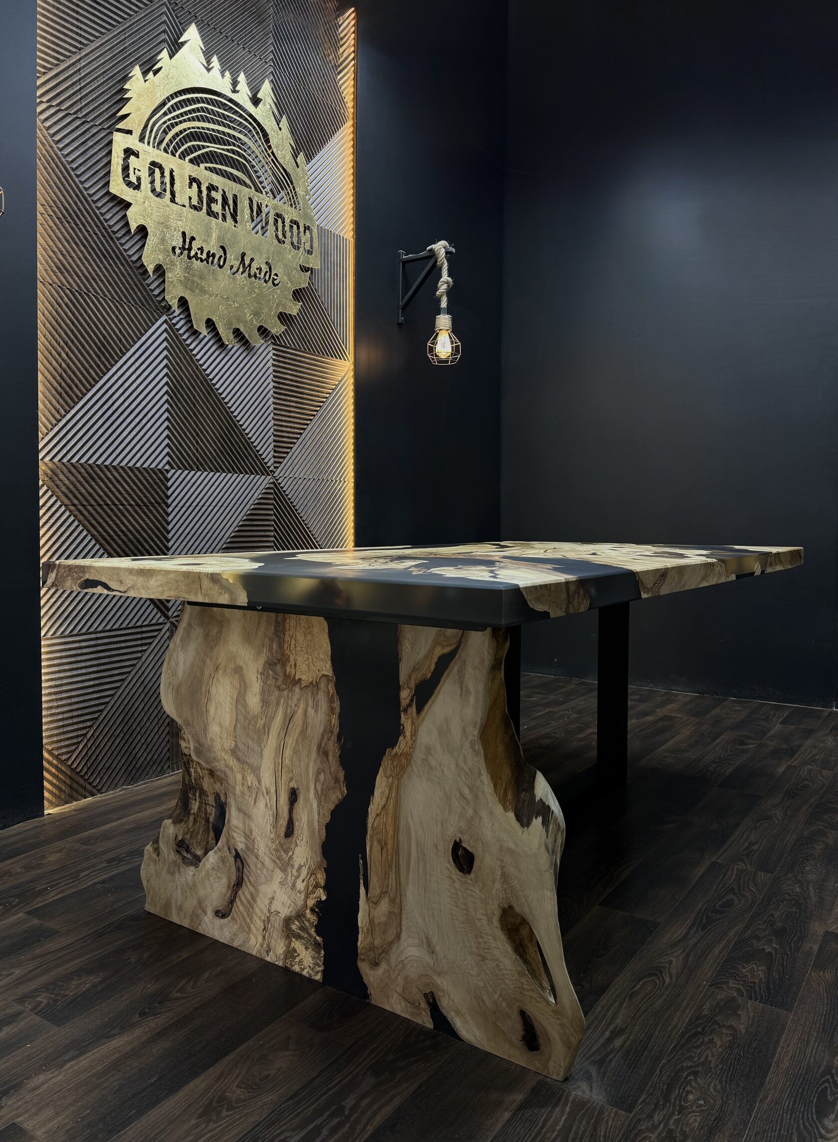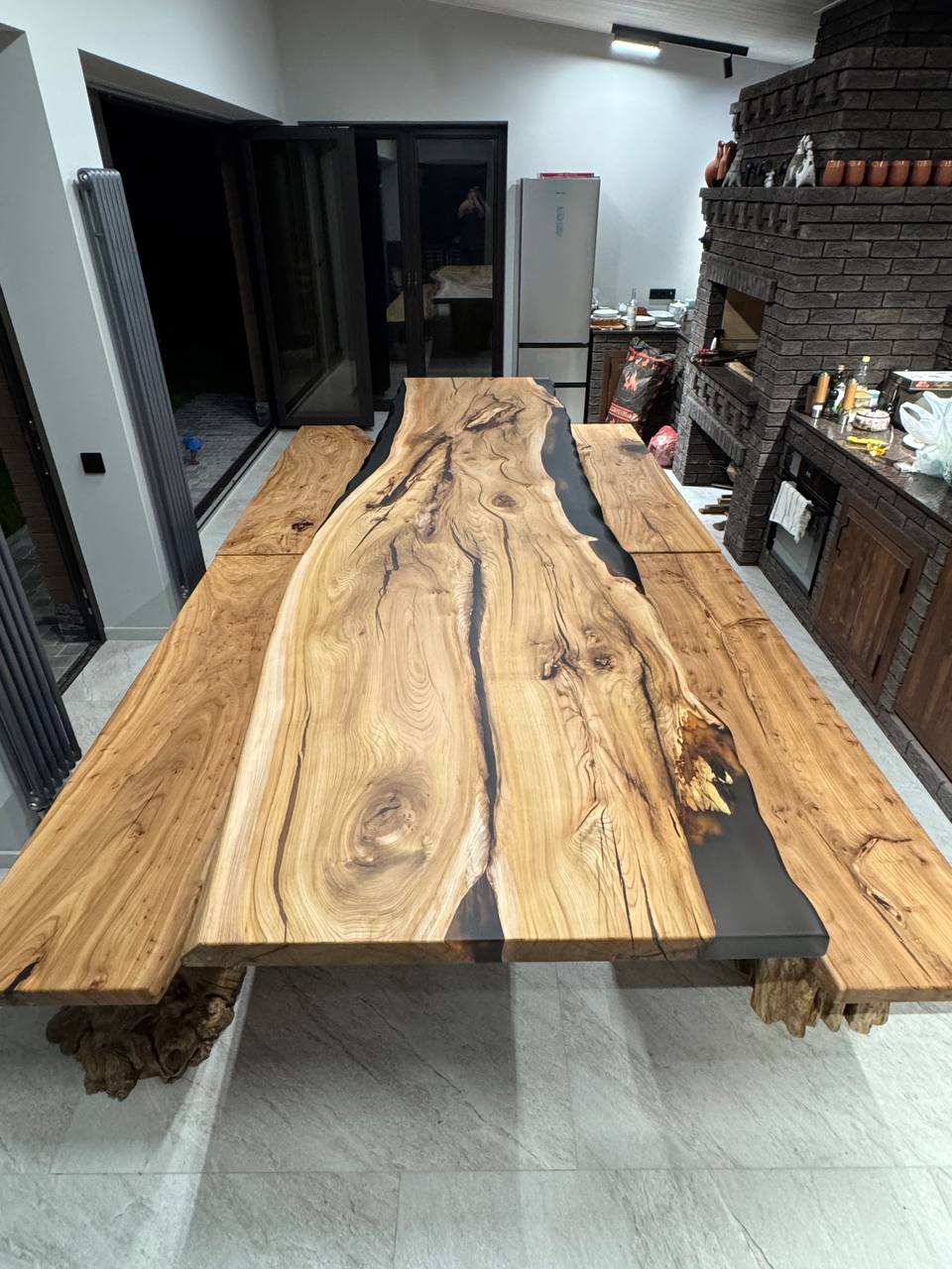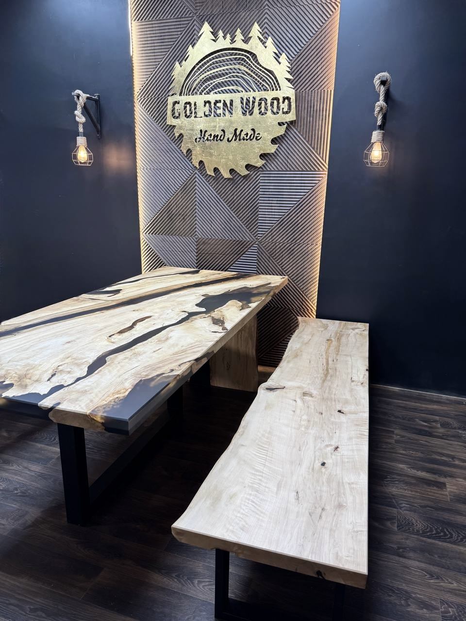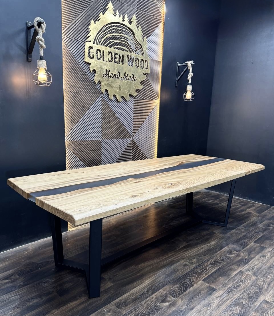 /Обеденный стол — это не просто предмет мебели, а настоящий центр жизни. Он создан для семейных ужинов, душевных встреч и важных разговоров за едой.Стол идеально вписывается в любой интерьер — будь то современная квартира или классический загородный дом. Сочетание натурального массива дерева и эпоксидной смолы, дарует ему уникальный характер, долговечность и неподвластное времени очарование./