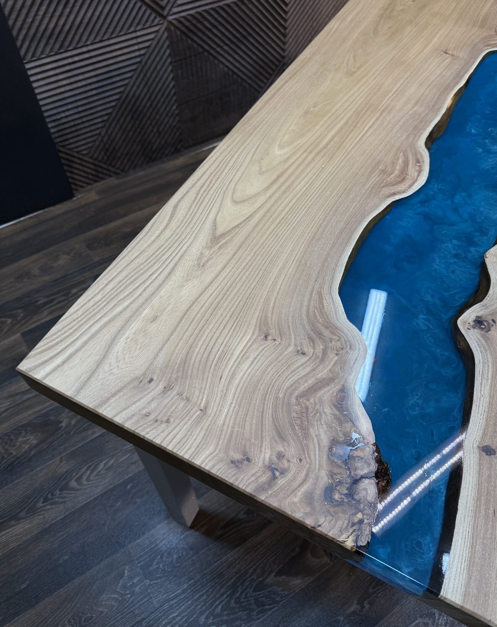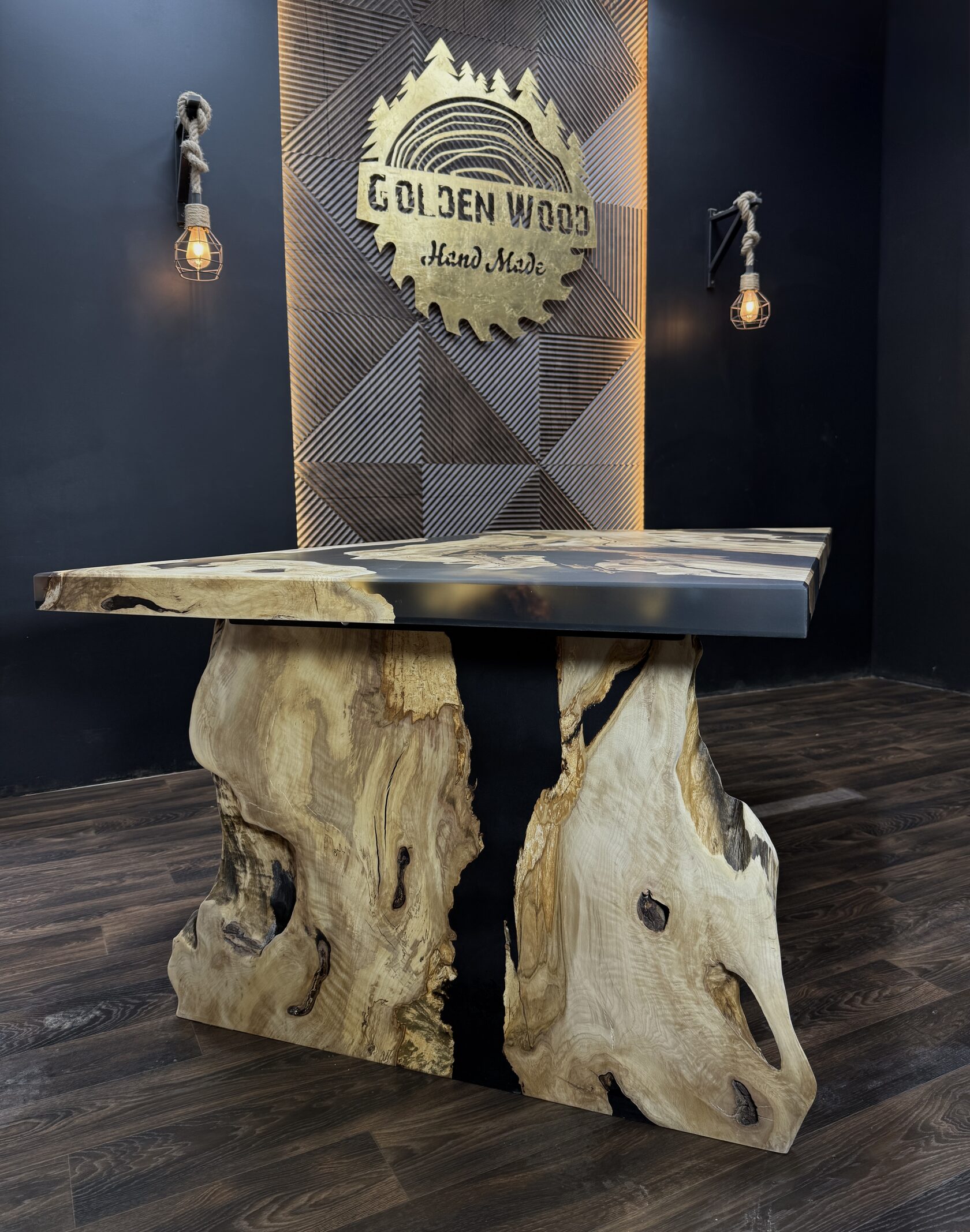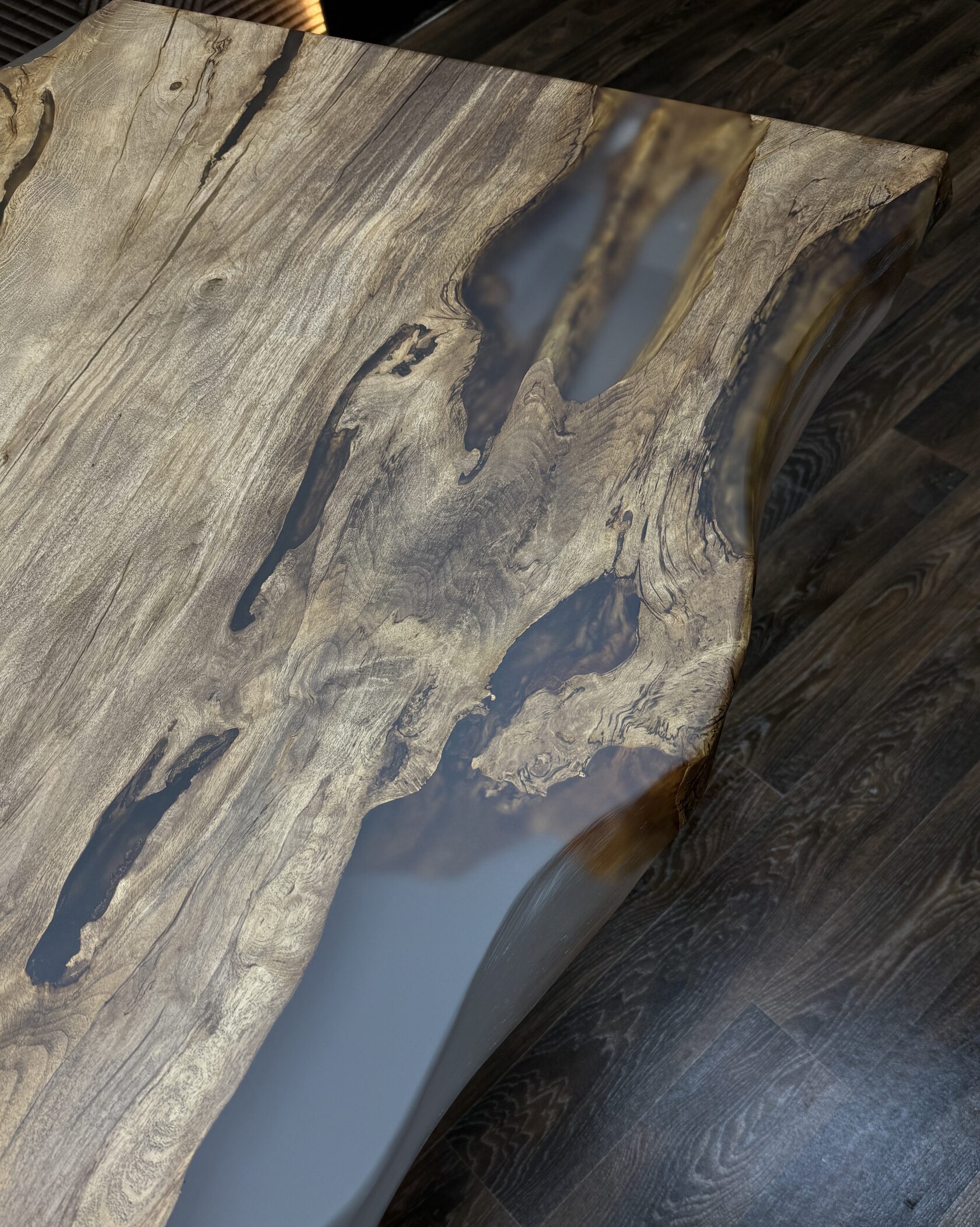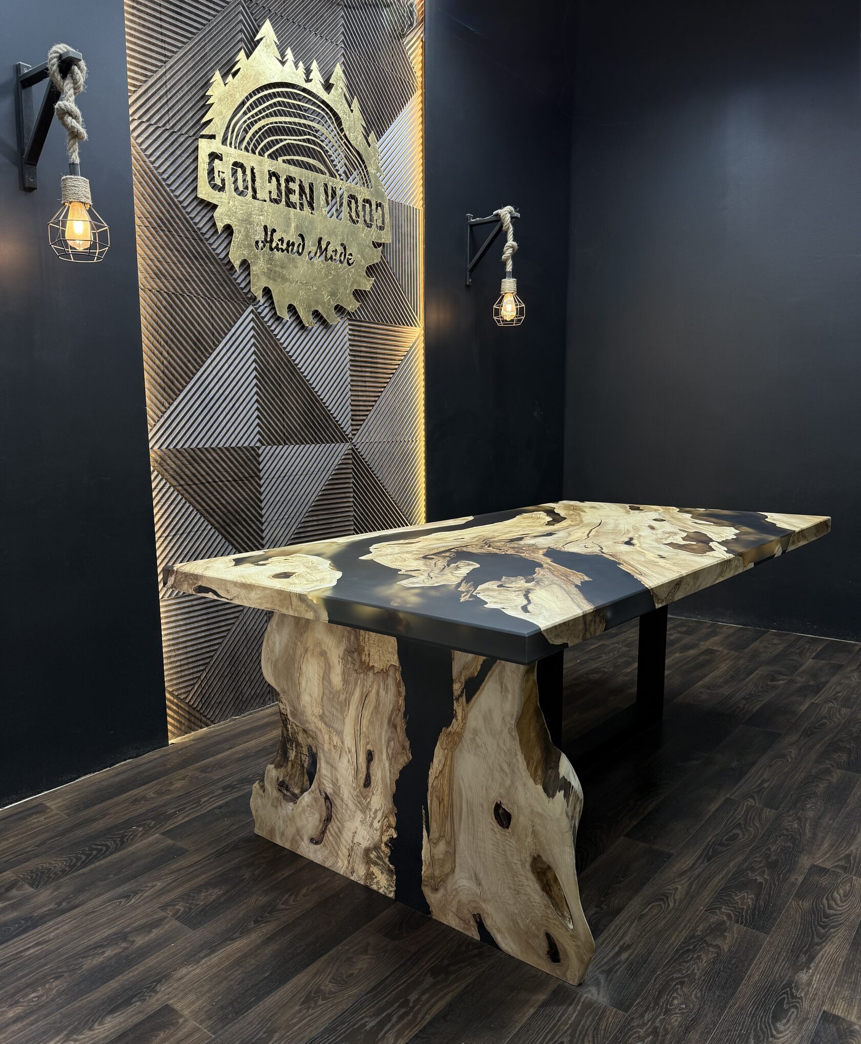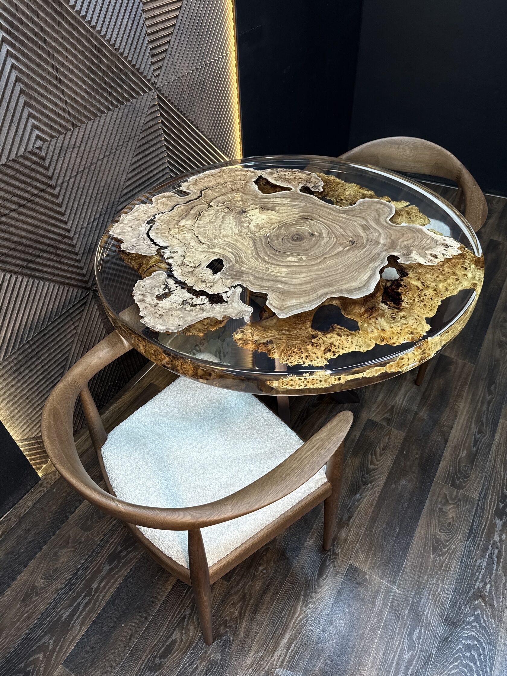 /Обеденный стол — это не просто предмет мебели, а настоящий центр жизни. Он создан для семейных ужинов, душевных встреч и важных разговоров за едой.Стол идеально вписывается в любой интерьер — будь то современная квартира или классический загородный дом. Сочетание натурального массива дерева и эпоксидной смолы, дарует ему уникальный характер, долговечность и неподвластное времени очарование./