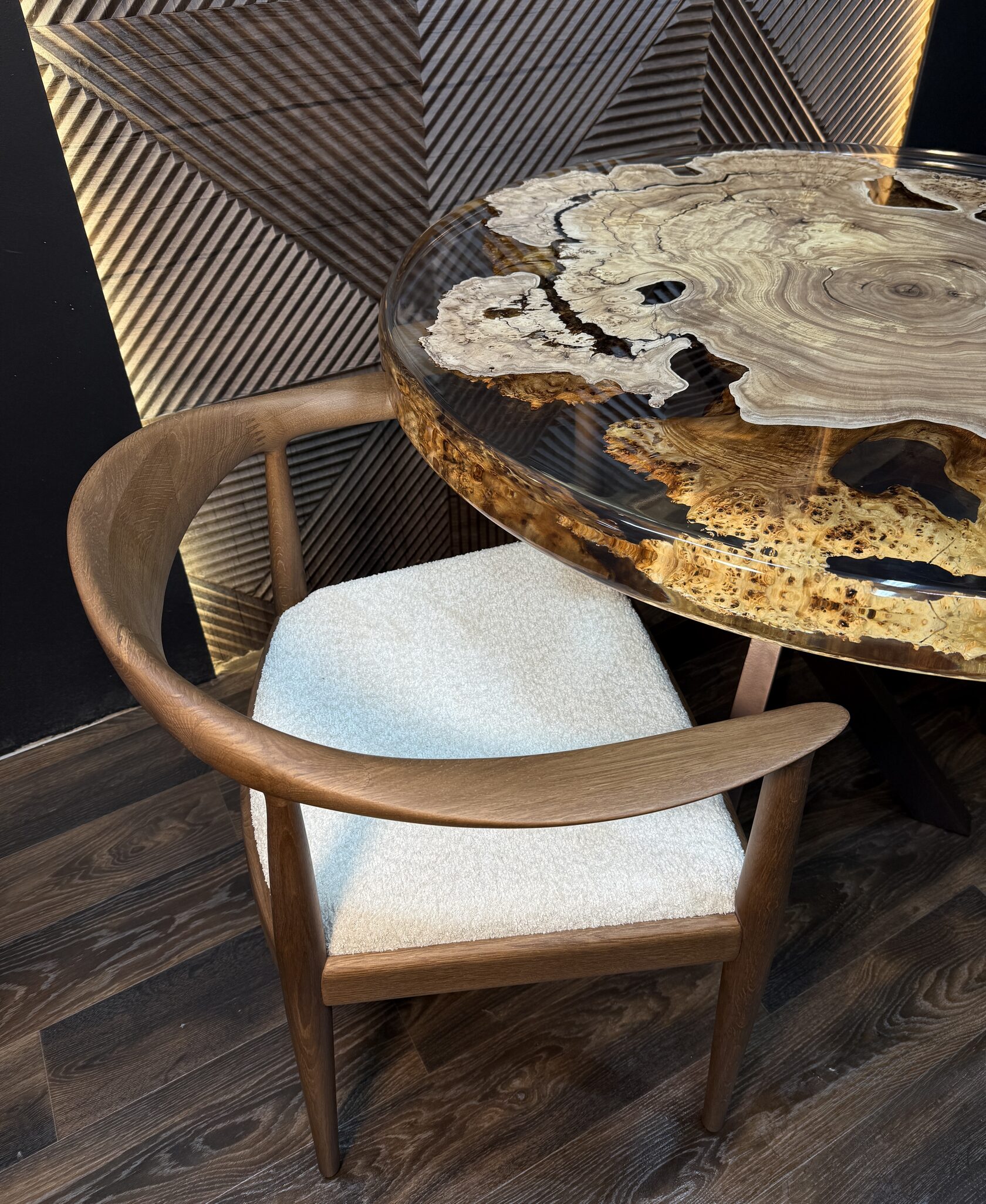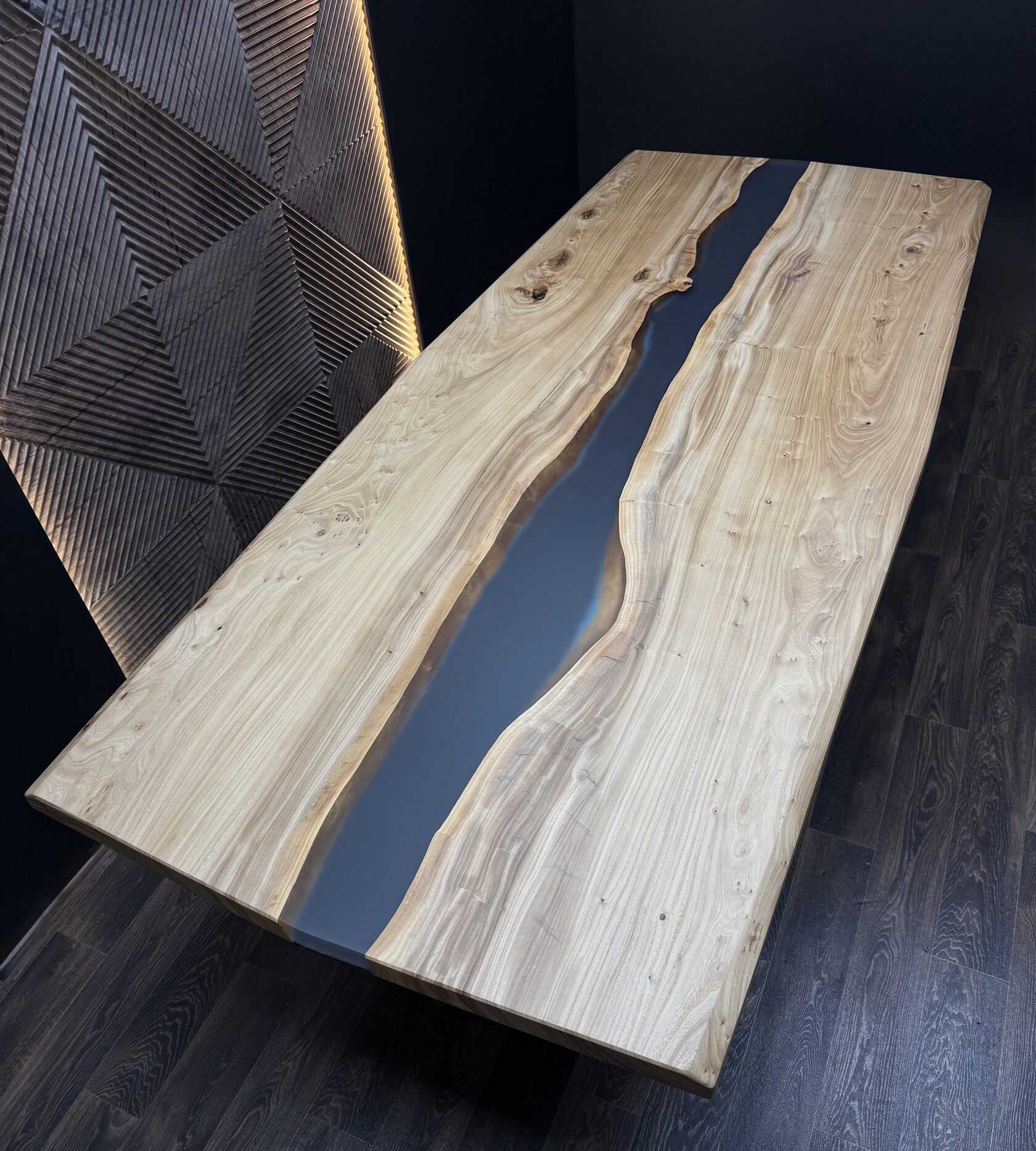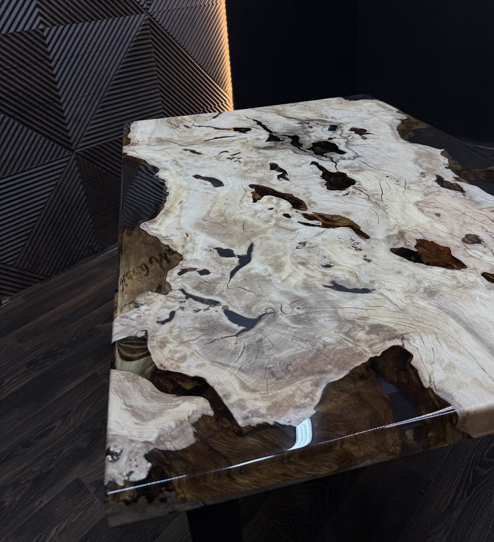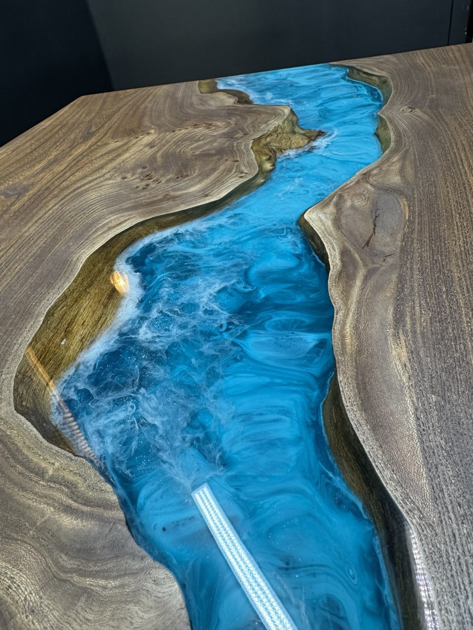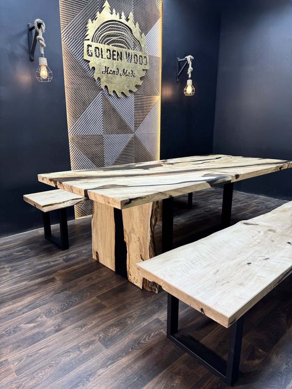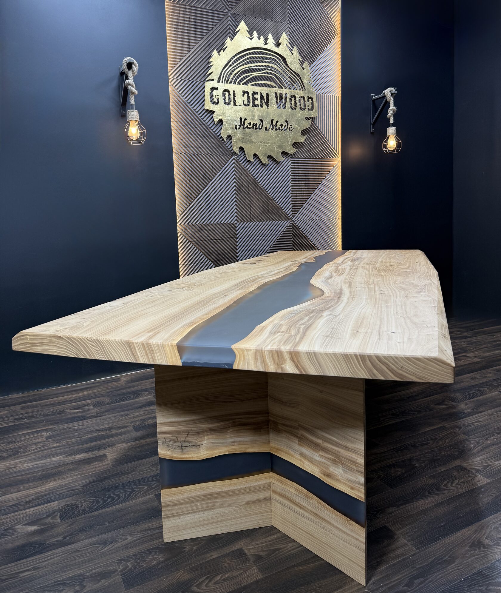/Обеденный стол — это не просто предмет мебели, а настоящий центр жизни. Он создан для семейных ужинов, душевных встреч и важных разговоров за едой.Стол идеально вписывается в любой интерьер — будь то современная квартира или классический загородный дом. Сочетание натурального массива дерева и эпоксидной смолы, дарует ему уникальный характер, долговечность и неподвластное времени очарование./