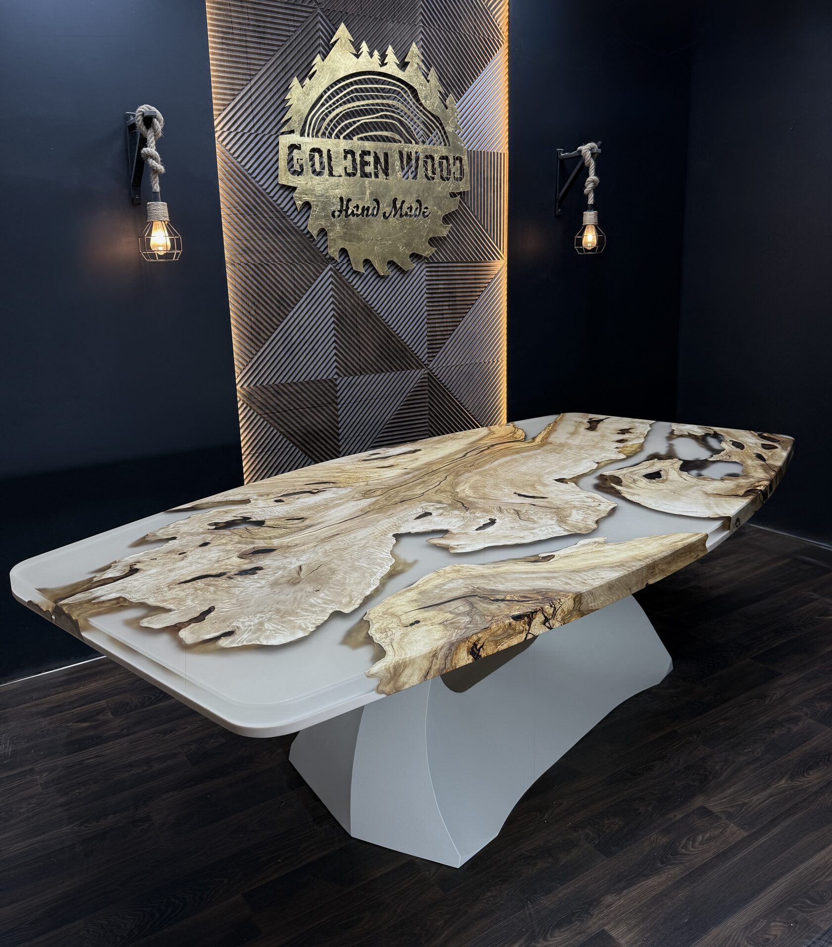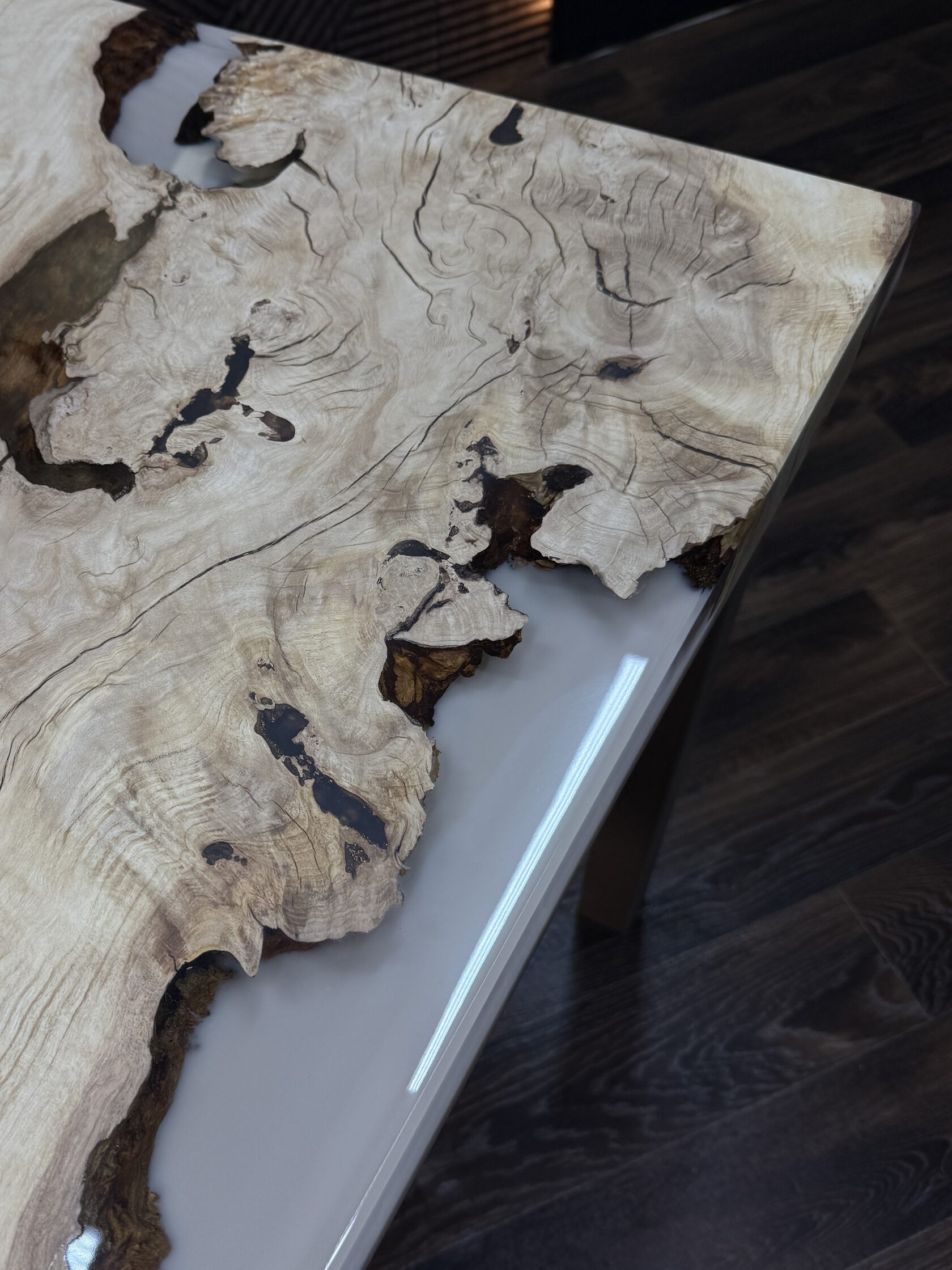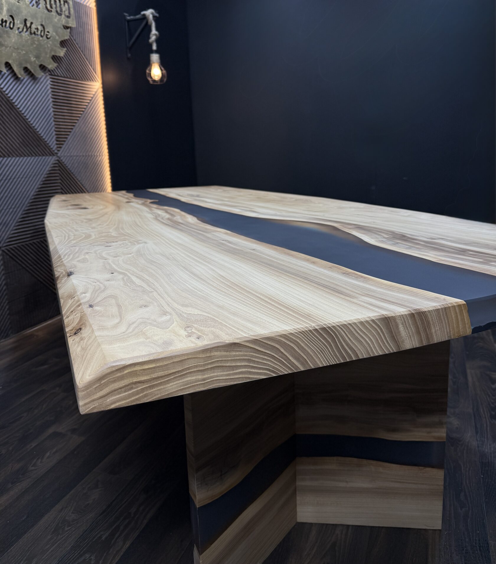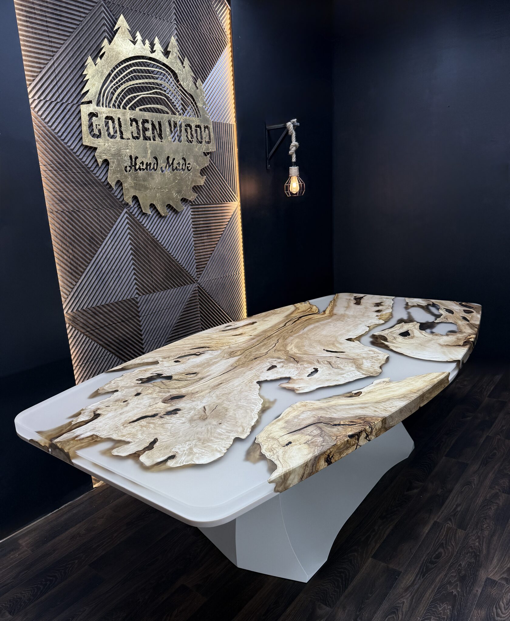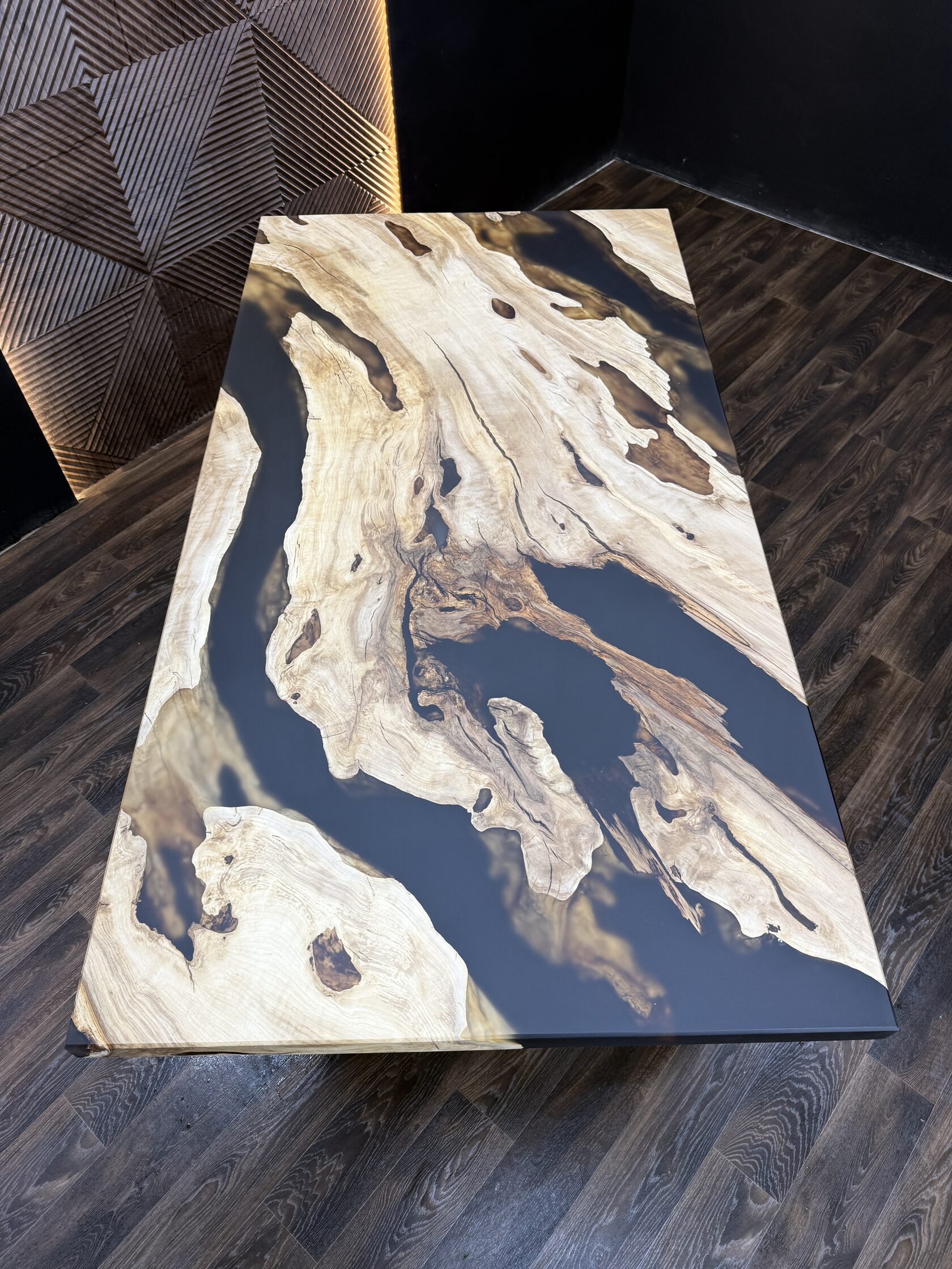 /Обеденный стол — это не просто предмет мебели, а настоящий центр жизни. Он создан для семейных ужинов, душевных встреч и важных разговоров за едой.Стол идеально вписывается в любой интерьер — будь то современная квартира или классический загородный дом. Сочетание натурального массива дерева и эпоксидной смолы, дарует ему уникальный характер, долговечность и неподвластное времени очарование./