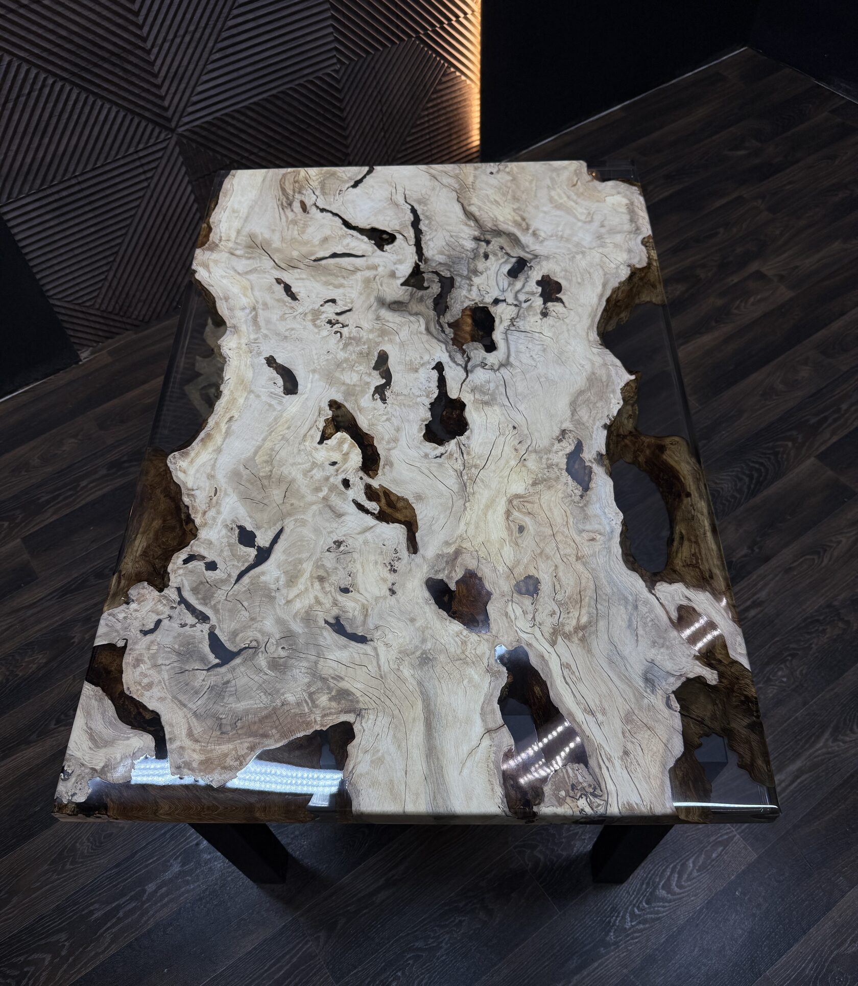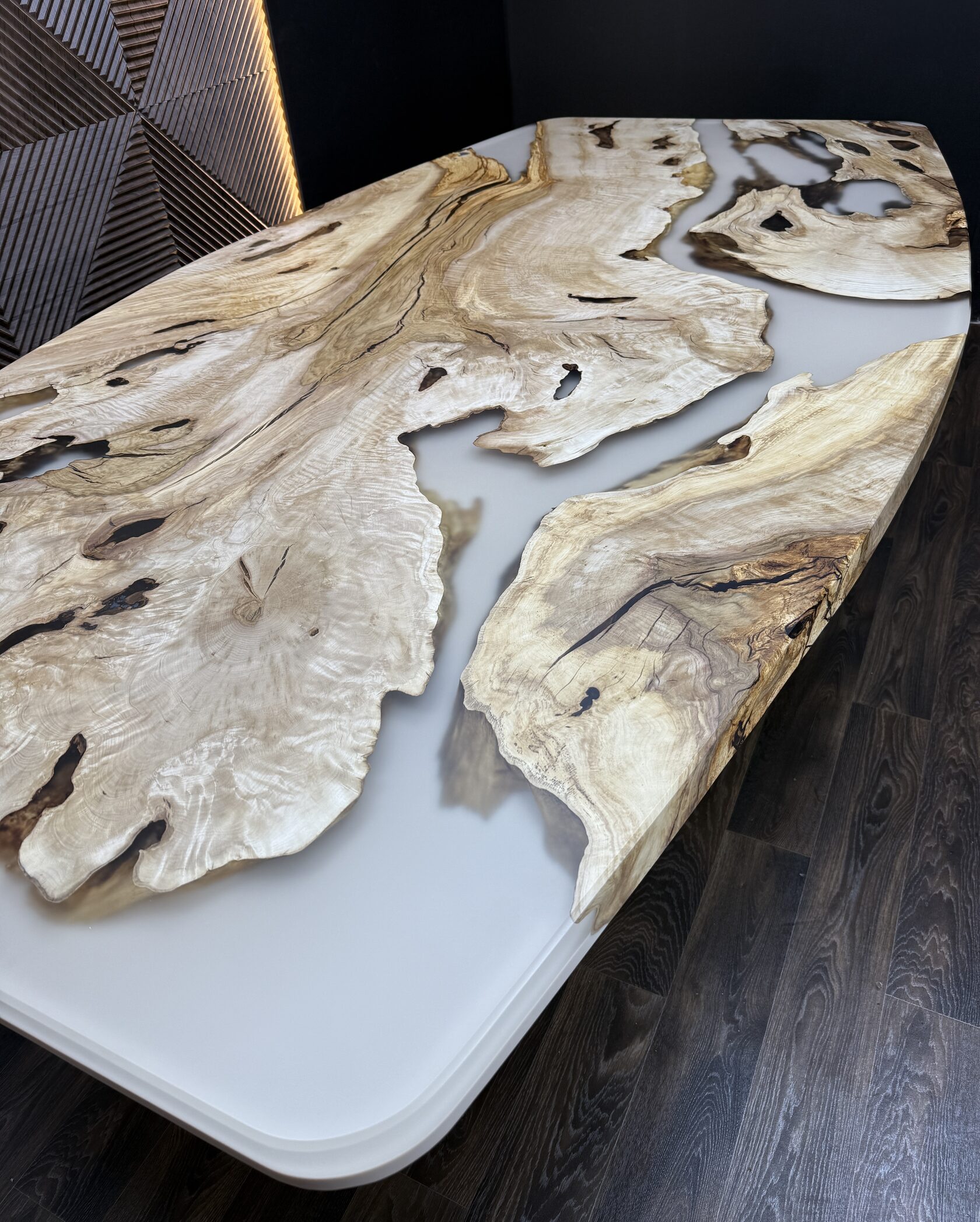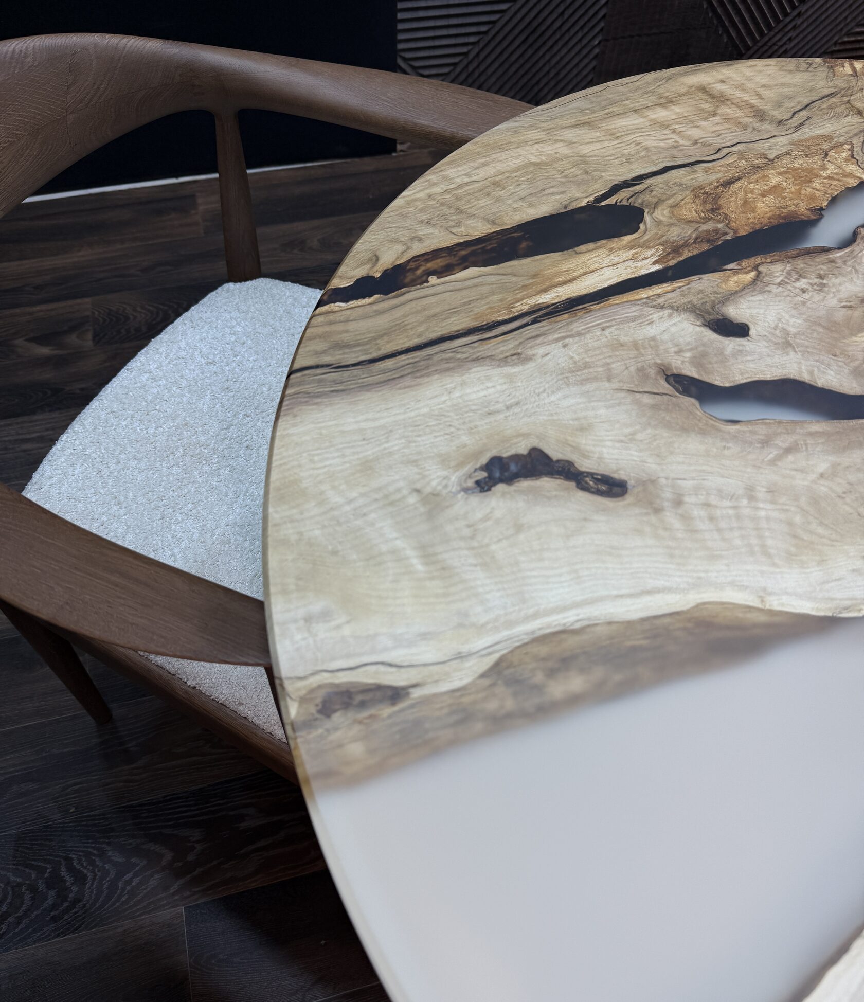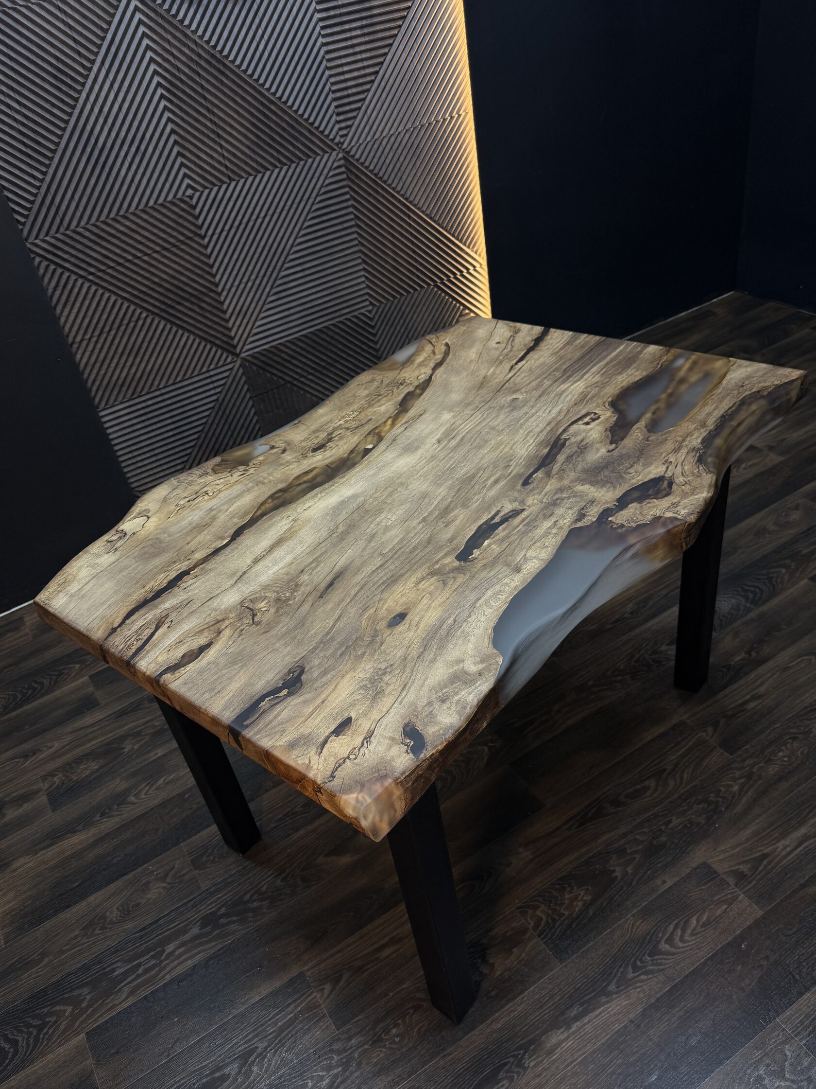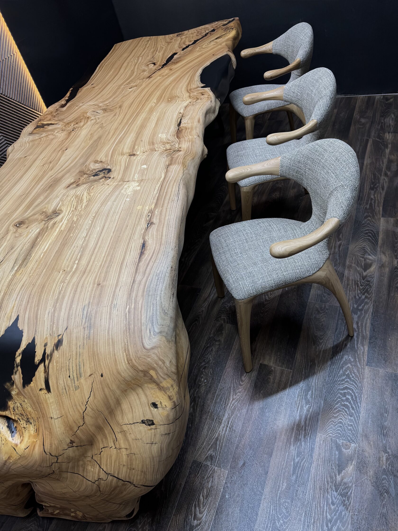 /Обеденный стол — это не просто предмет мебели, а настоящий центр жизни. Он создан для семейных ужинов, душевных встреч и важных разговоров за едой.Стол идеально вписывается в любой интерьер — будь то современная квартира или классический загородный дом. Сочетание натурального массива дерева и эпоксидной смолы, дарует ему уникальный характер, долговечность и неподвластное времени очарование./