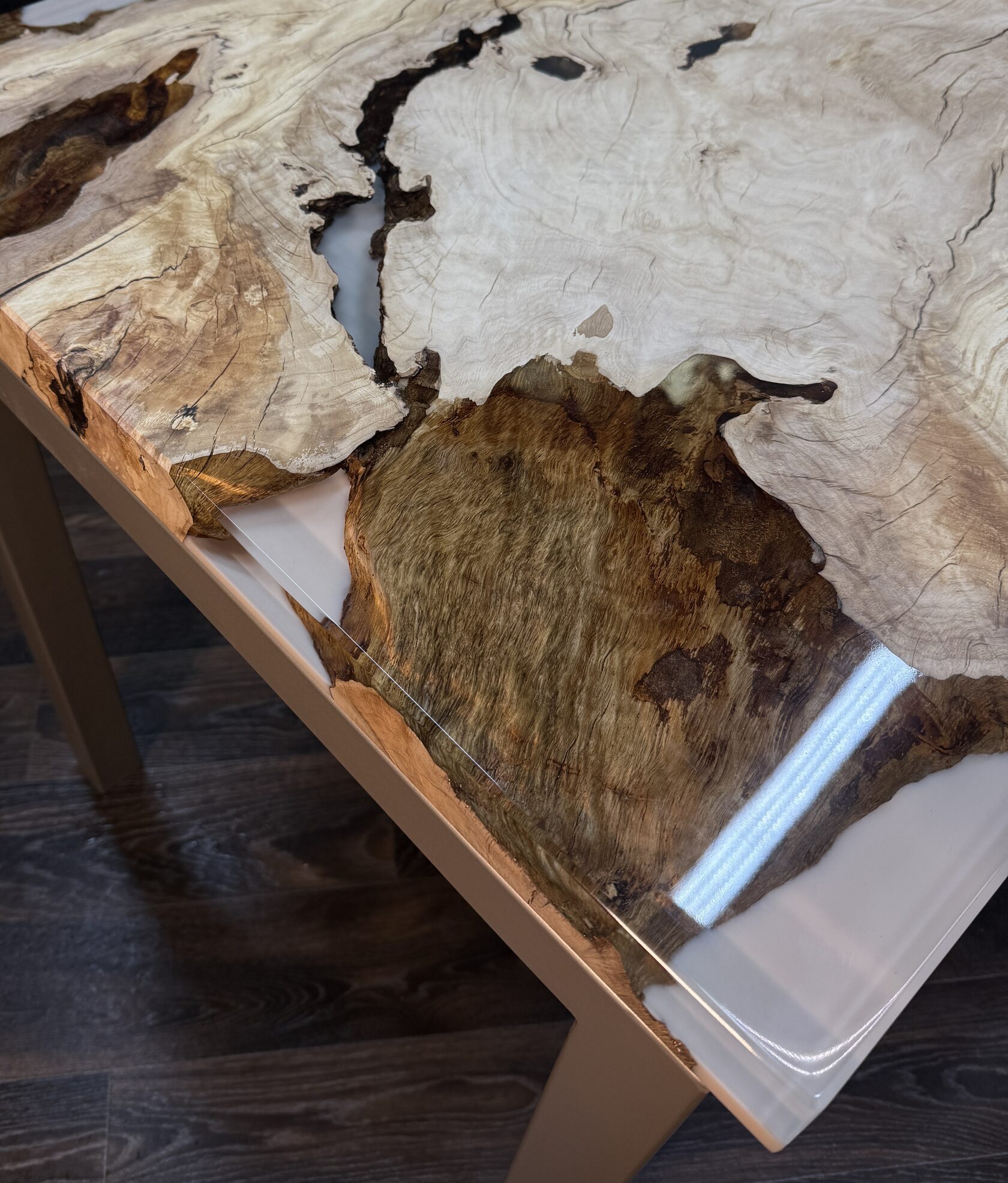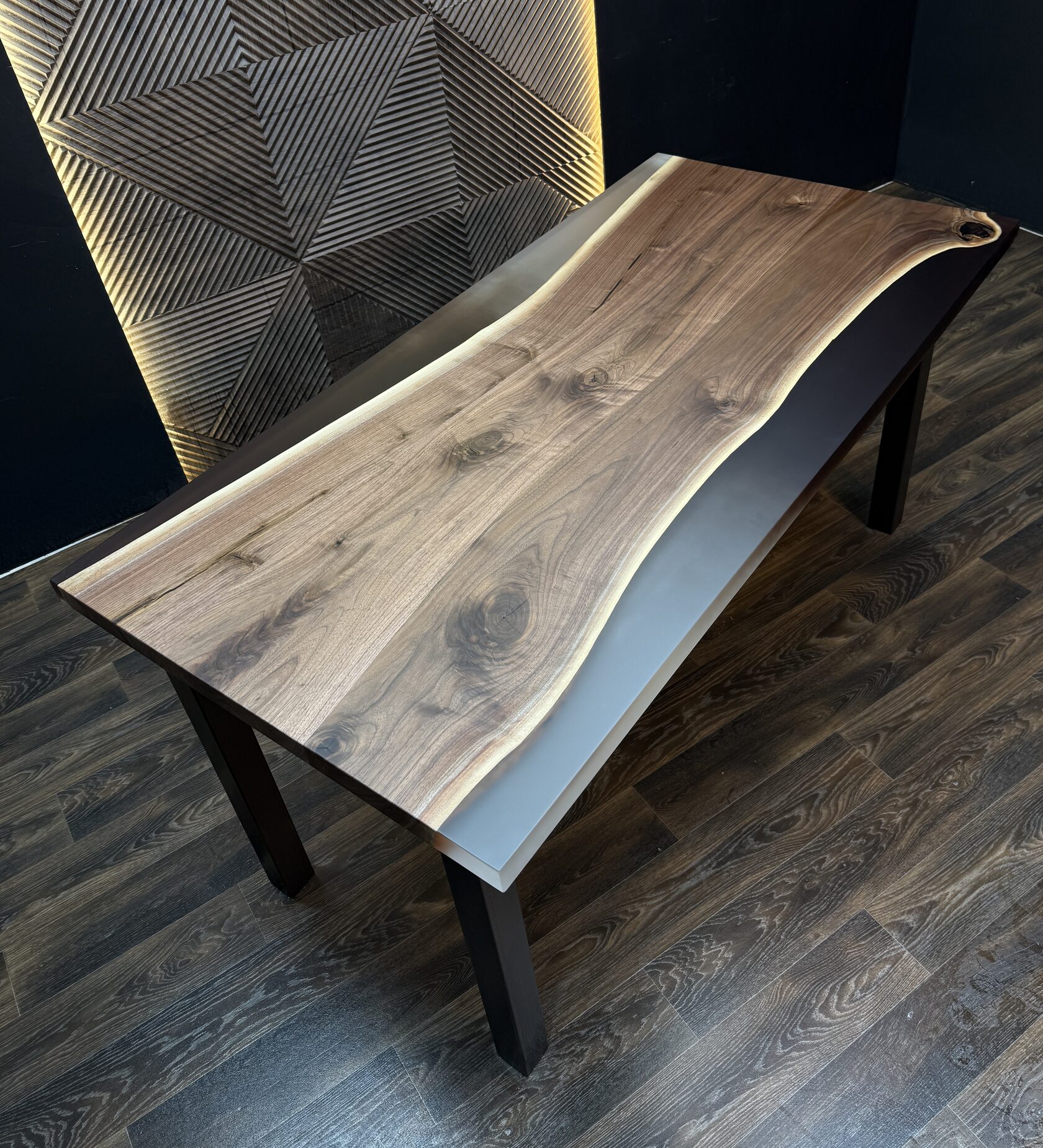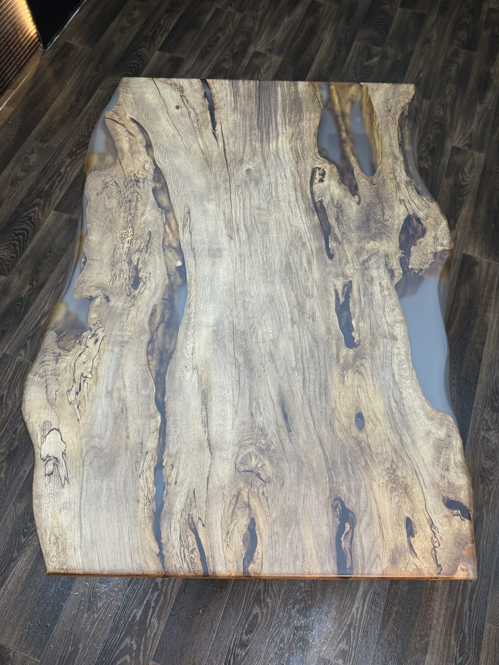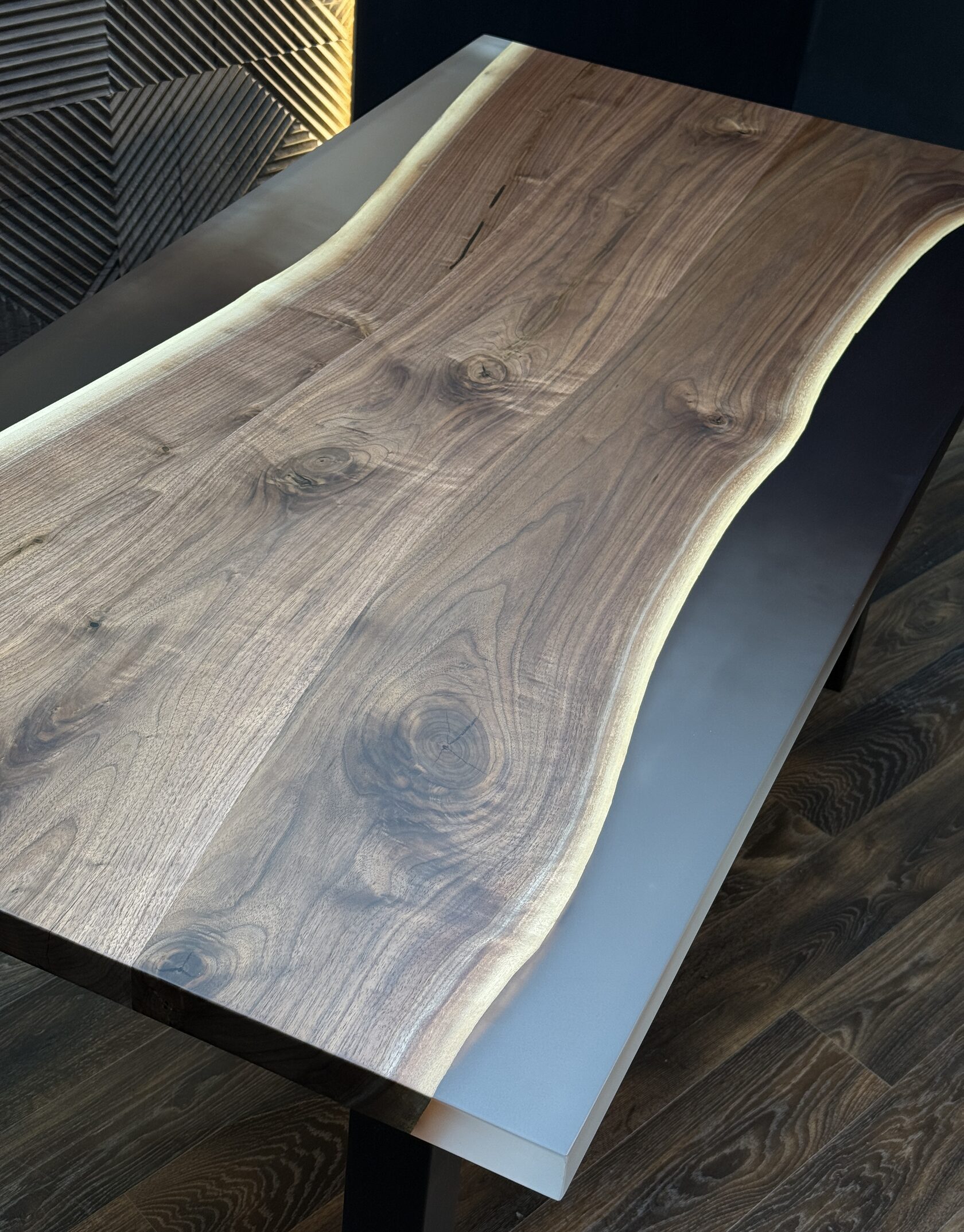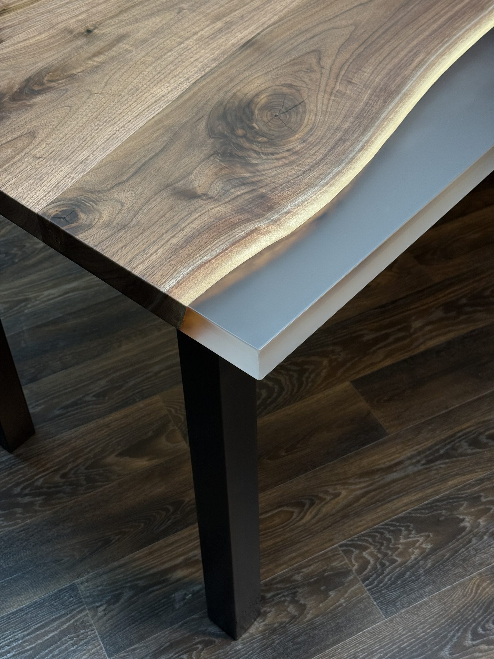 /Обеденный стол — это не просто предмет мебели, а настоящий центр жизни. Он создан для семейных ужинов, душевных встреч и важных разговоров за едой.Стол идеально вписывается в любой интерьер — будь то современная квартира или классический загородный дом. Сочетание натурального массива дерева и эпоксидной смолы, дарует ему уникальный характер, долговечность и неподвластное времени очарование./