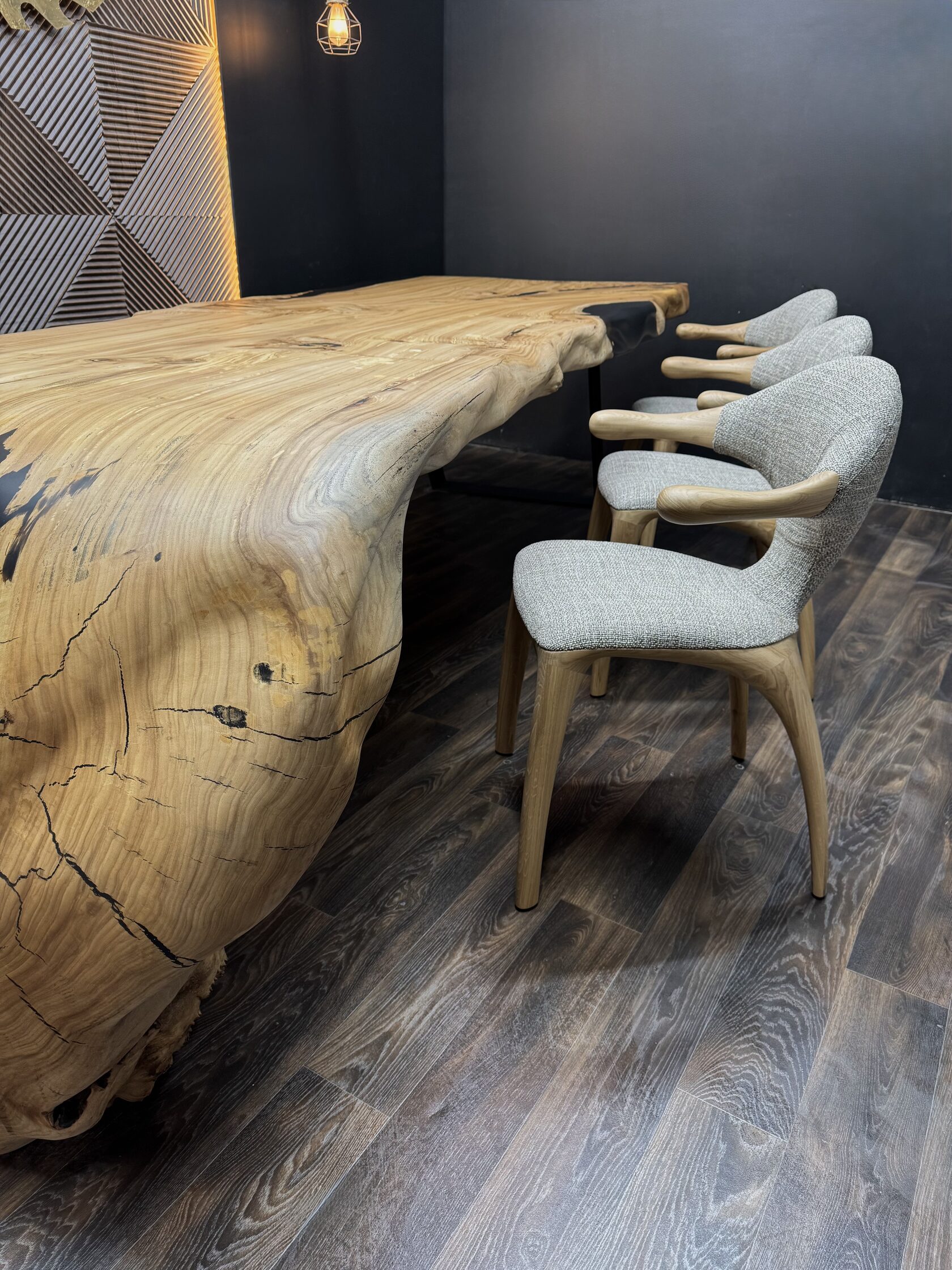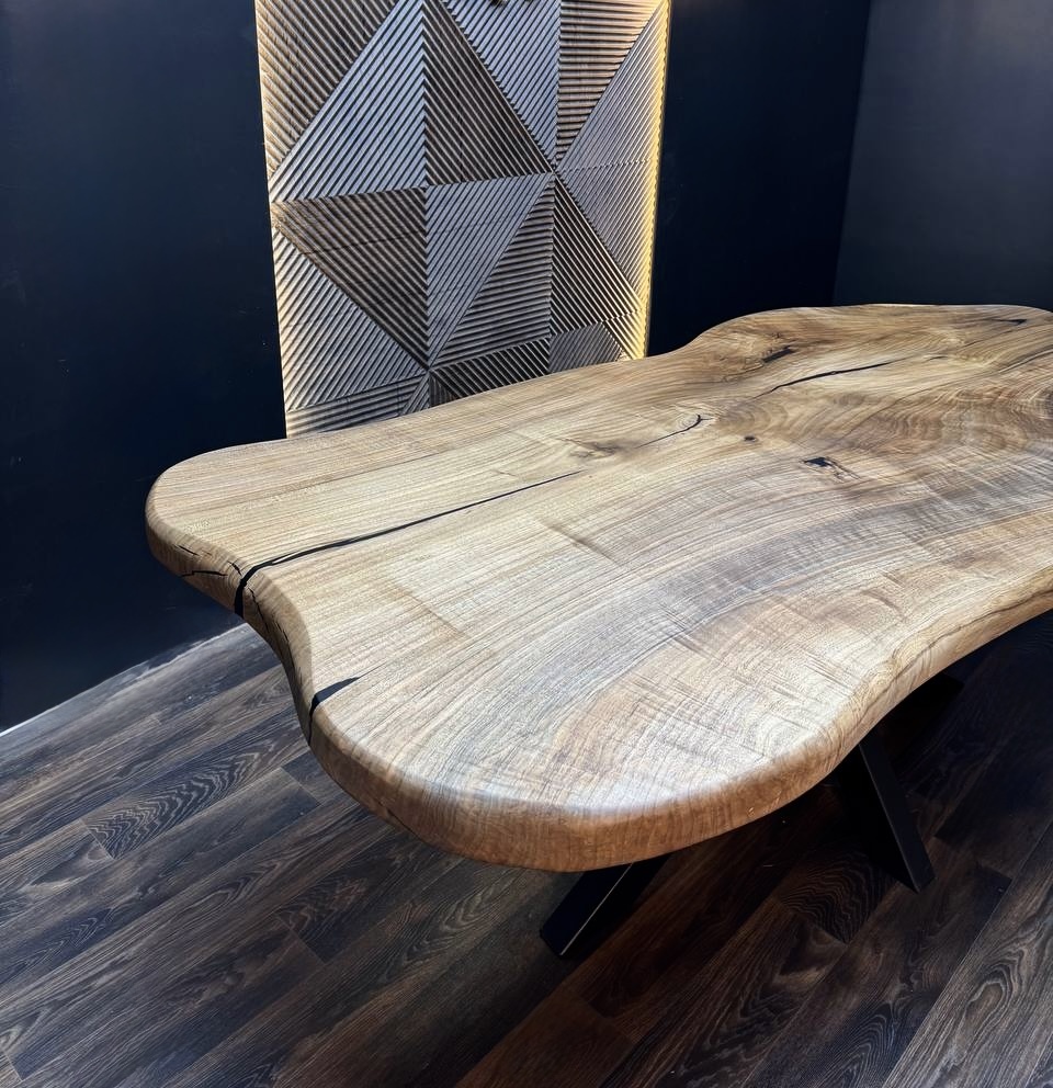 /Обеденный стол — это не просто предмет мебели, настоящий центр жизни. Он создан для семейных ужинов, душевных встреч и важных разговоров за едой.Стол из массива идеально вписывается в любой интерьер — будь то современная квартира или классический загородный дом. Сочетание натурального массива дерева и эпоксидной смолы, дарует ему уникальный характер, долговечность и неподвластное времени очарование./