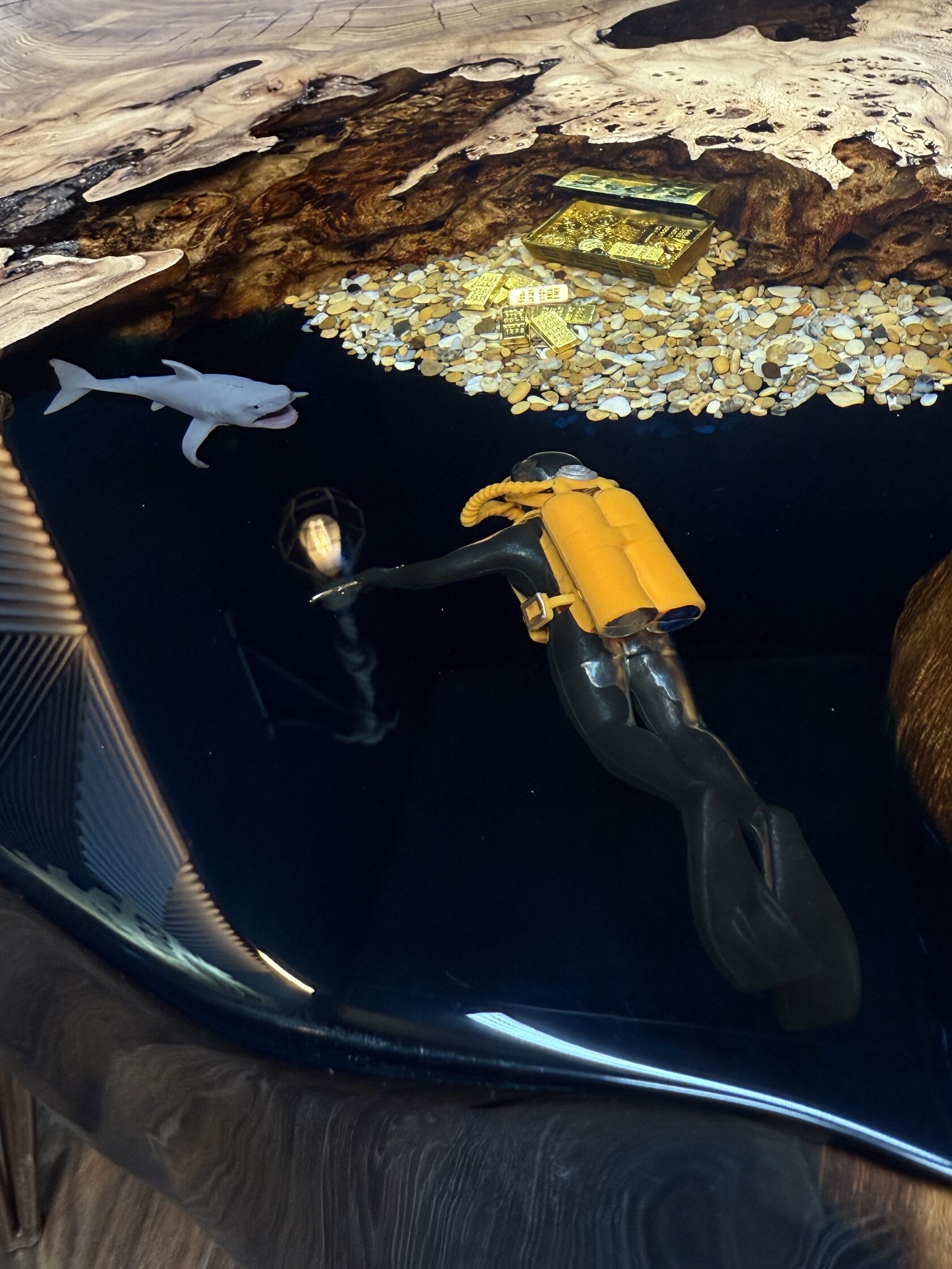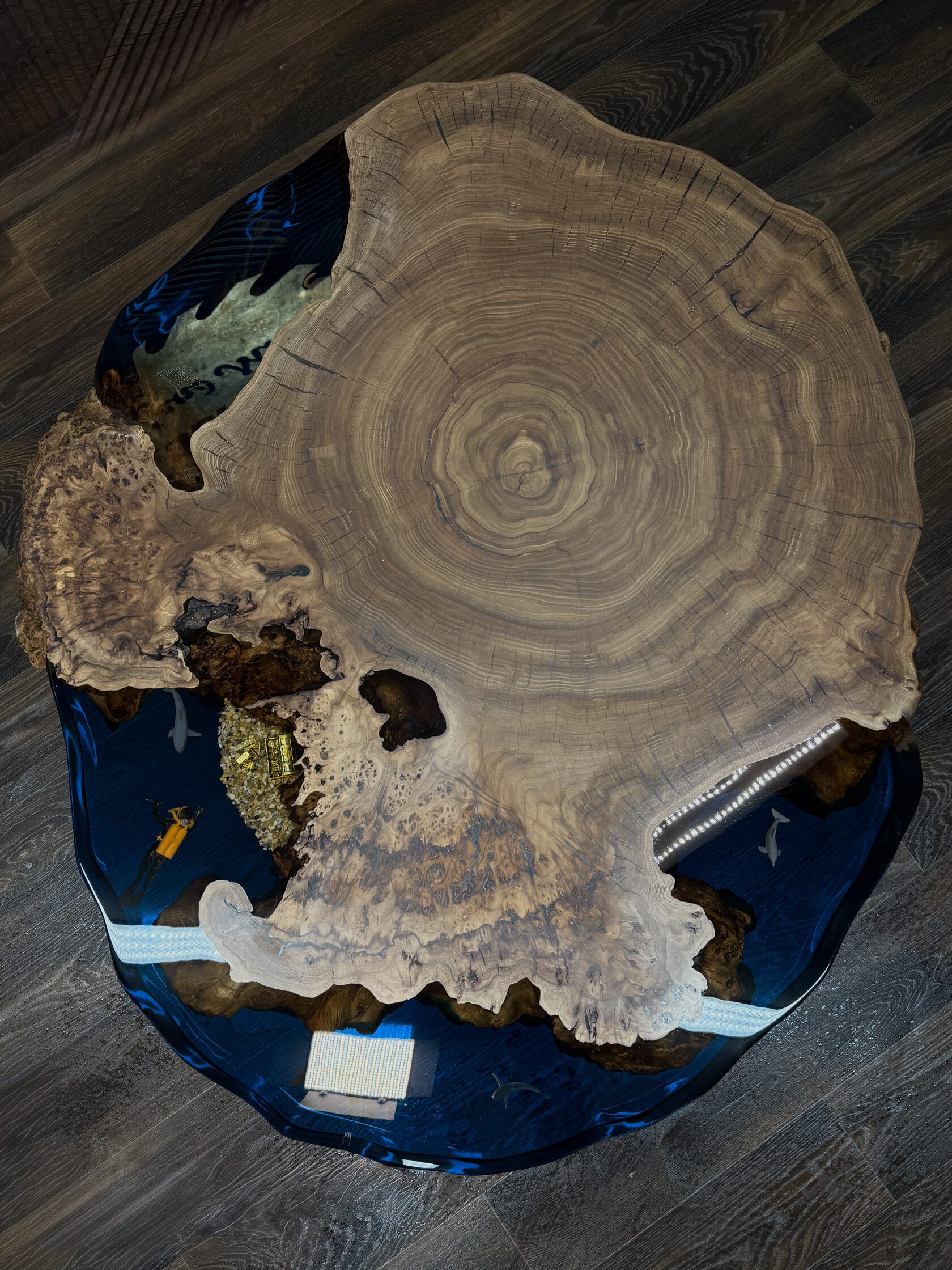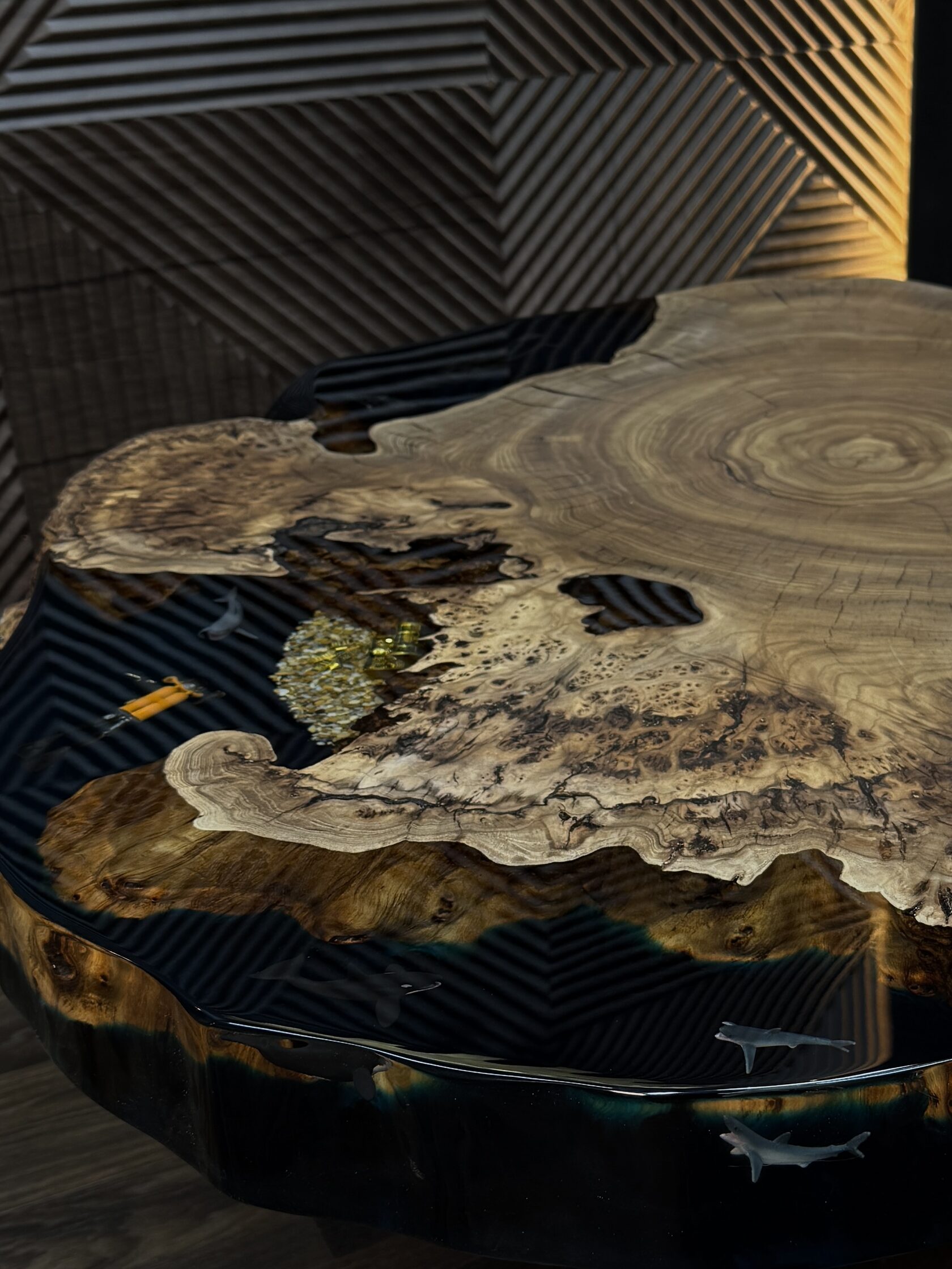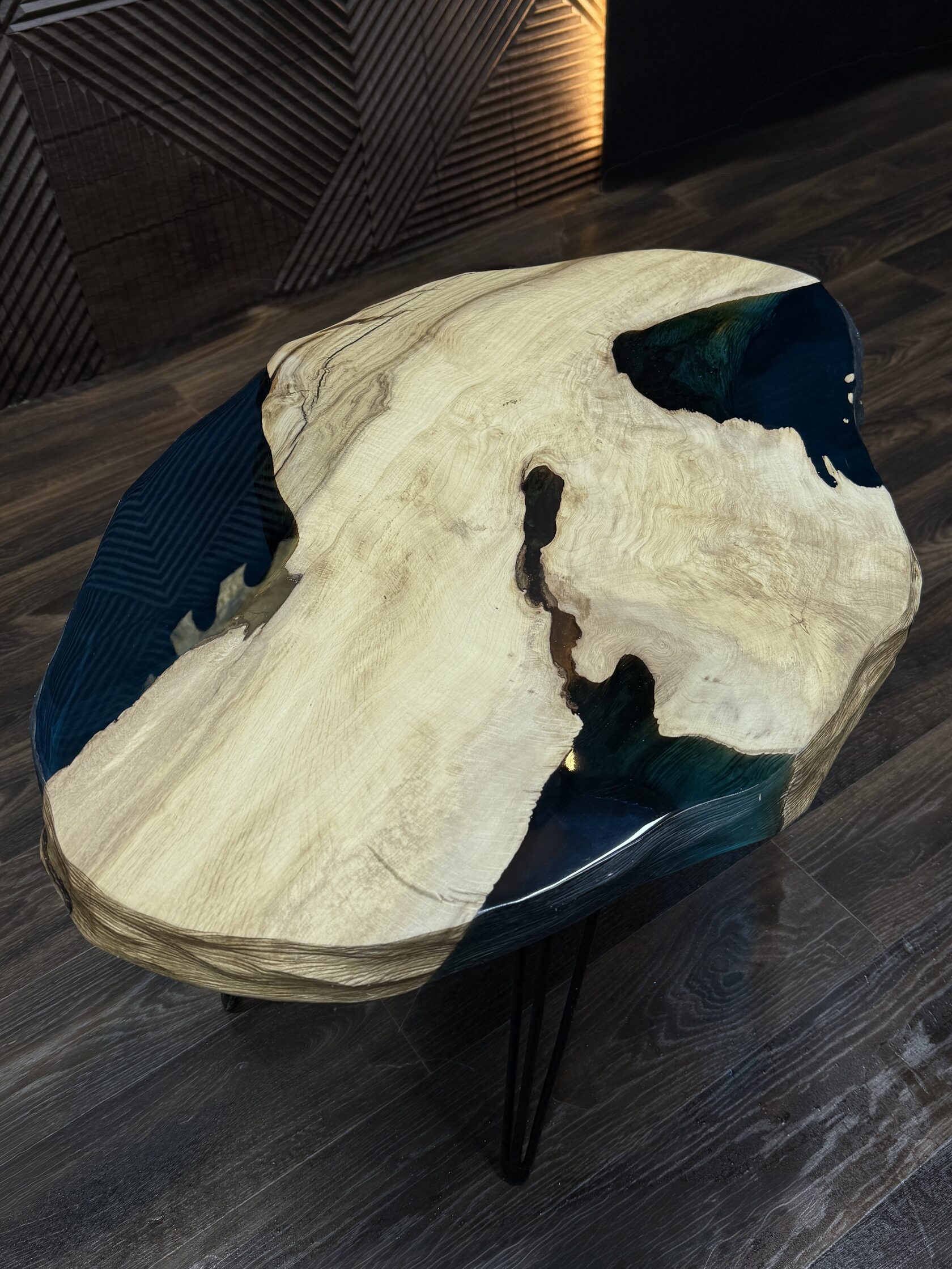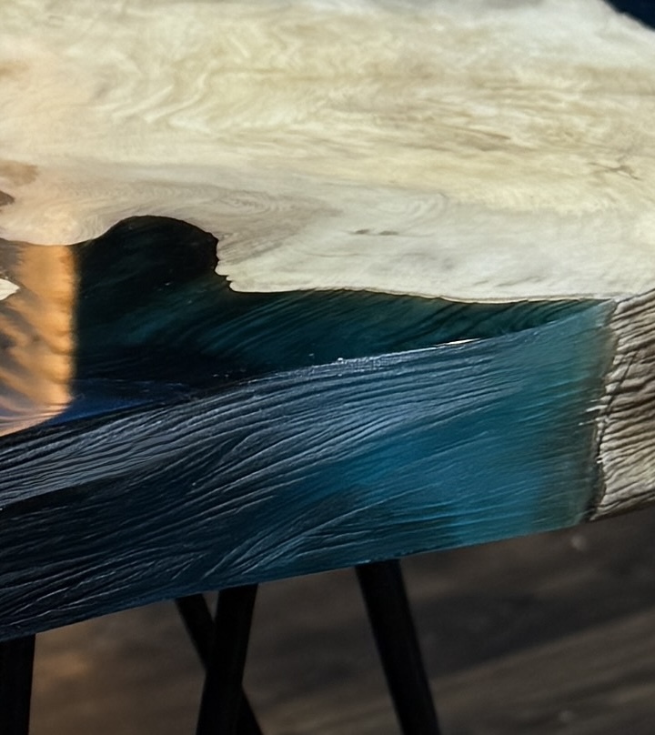 Подстолье из массива Граба в сочетании с прозрачной смолой
